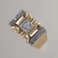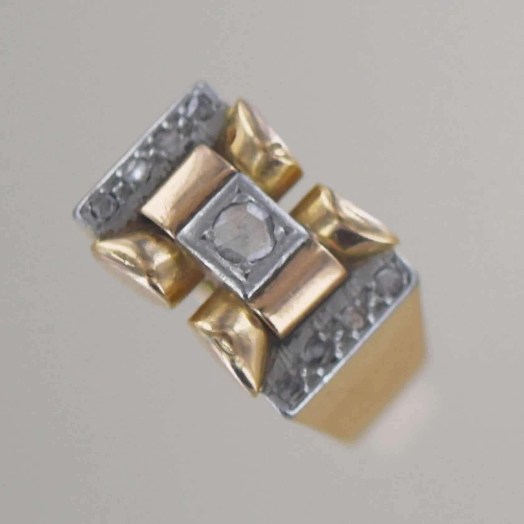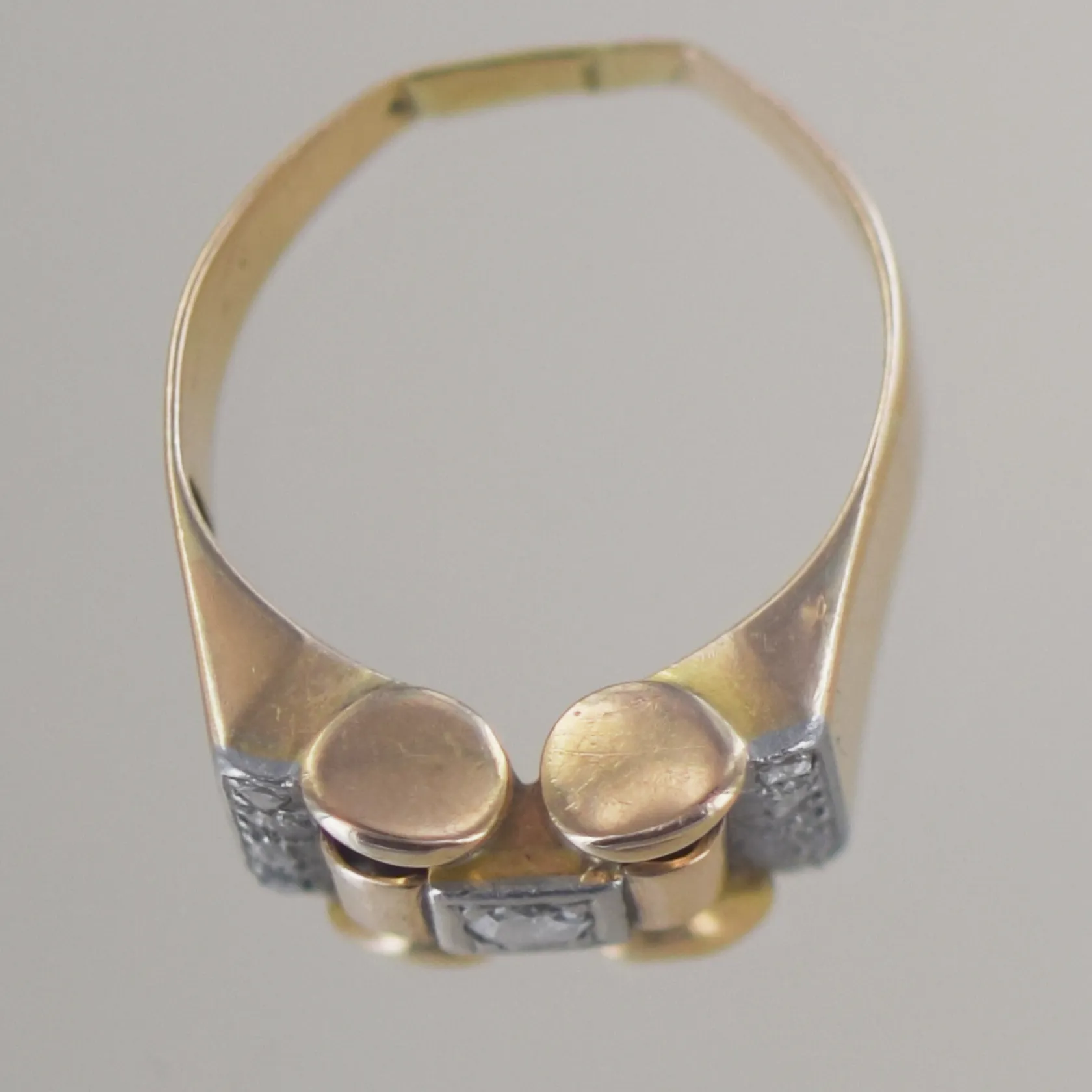 Ring med diamanter 1 x 0,10ct/8 x 0,01ct, Ø 19 mm, bredd 11,3 mm, ojämn skena, 18K Vikt: 6,6 g.