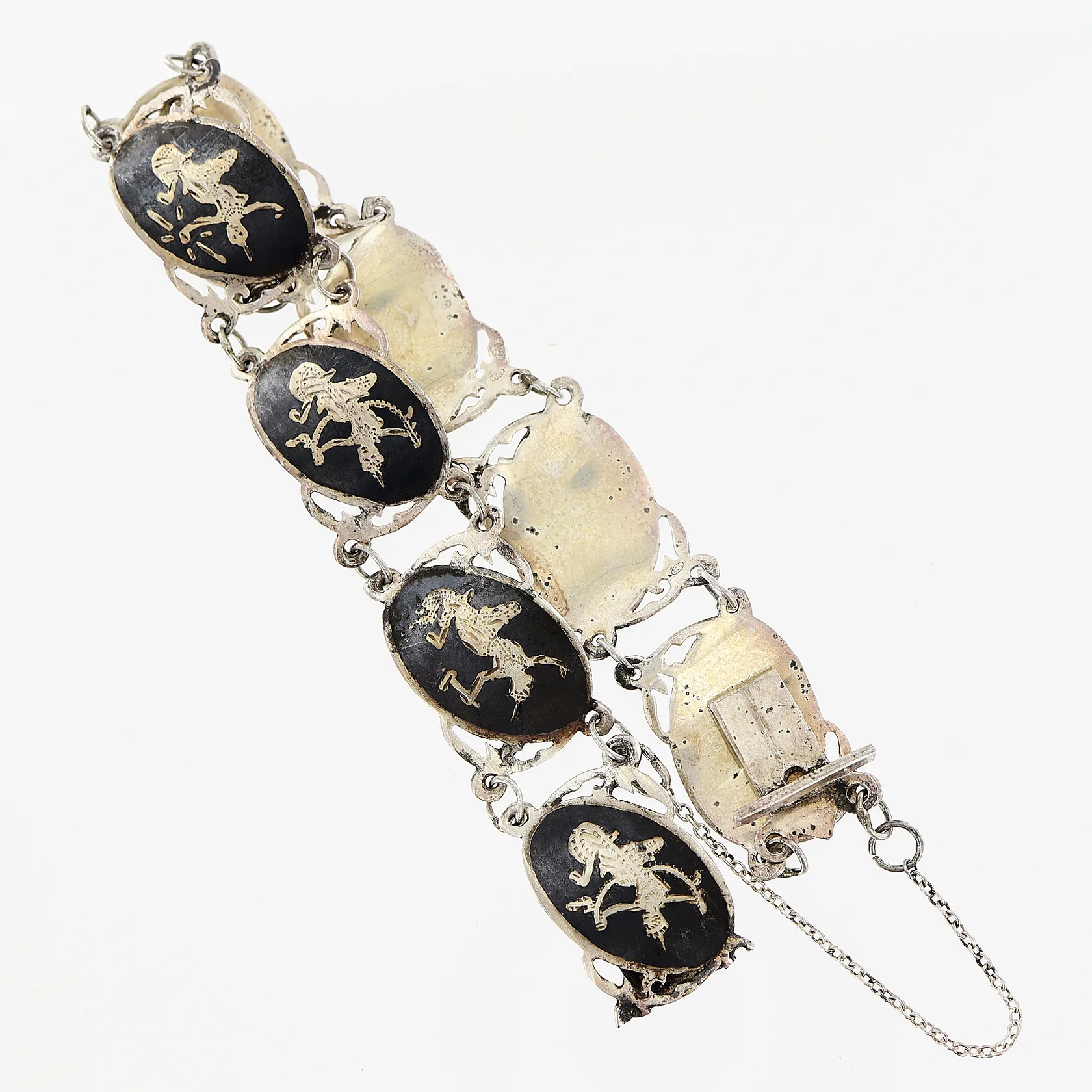Armband ca 17,5cm, oxiderade plattor med motiv, bredd 12mm, silver 925/1000. Vikt: 13,5 g.