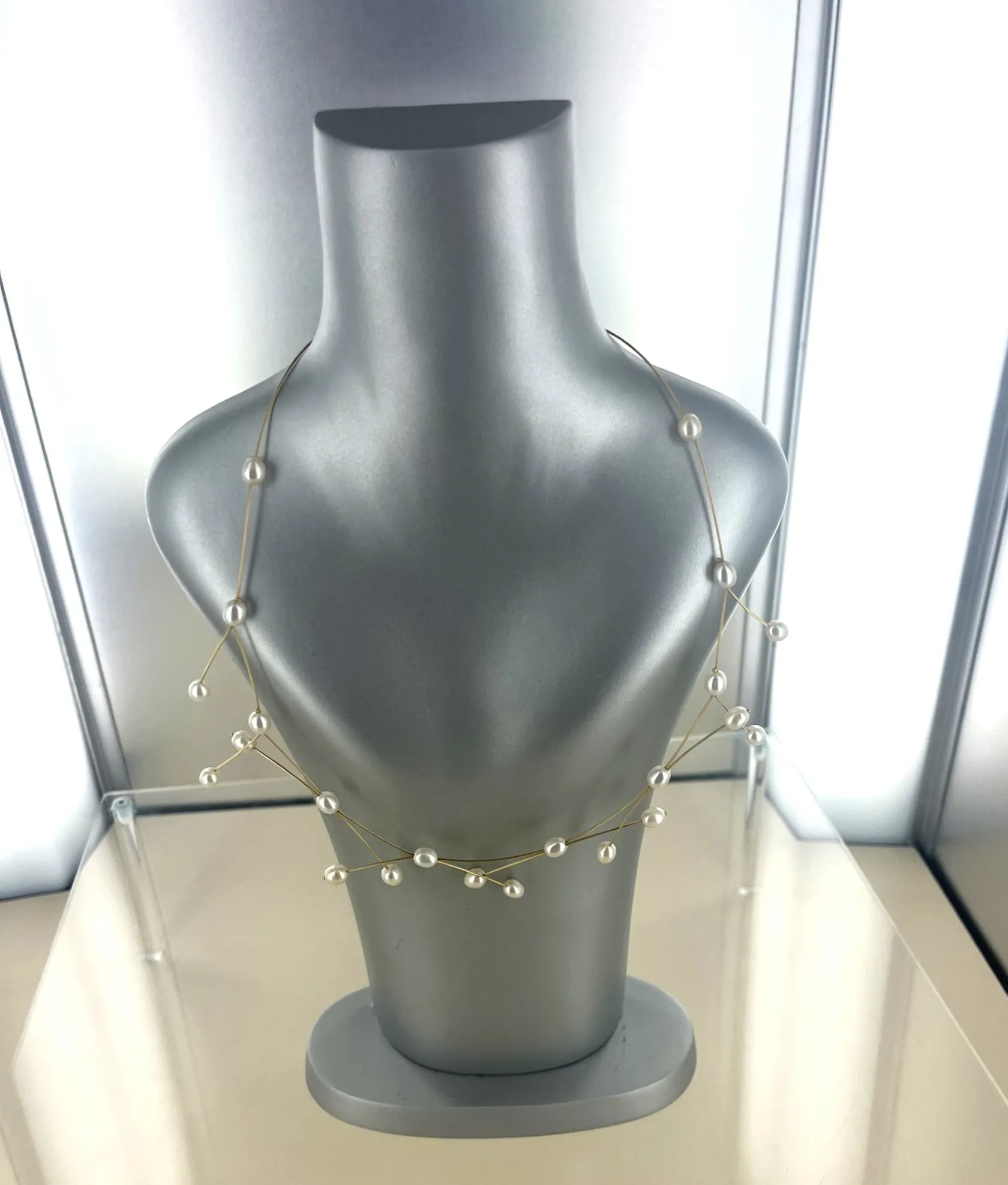 Collier med pärlor, längd 42-45 cm, 18K Vikt: 10,9 g.