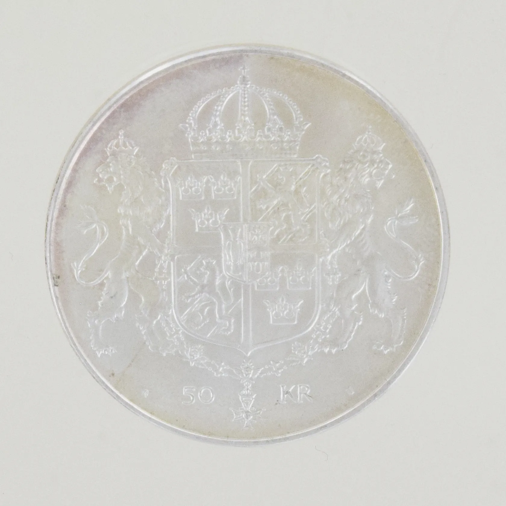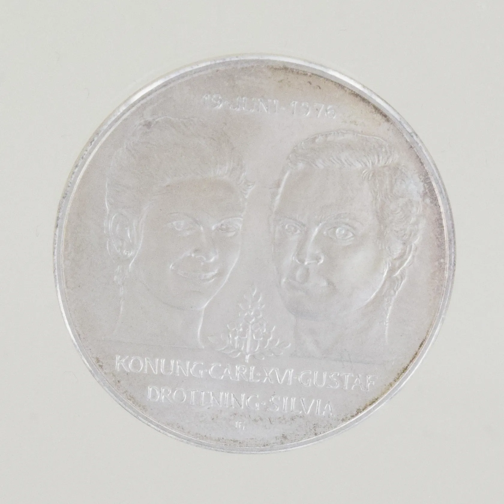 Silvermynt 50-kronor Kunga paret, silver 92,5%, 27 g Vikt: 27 g.