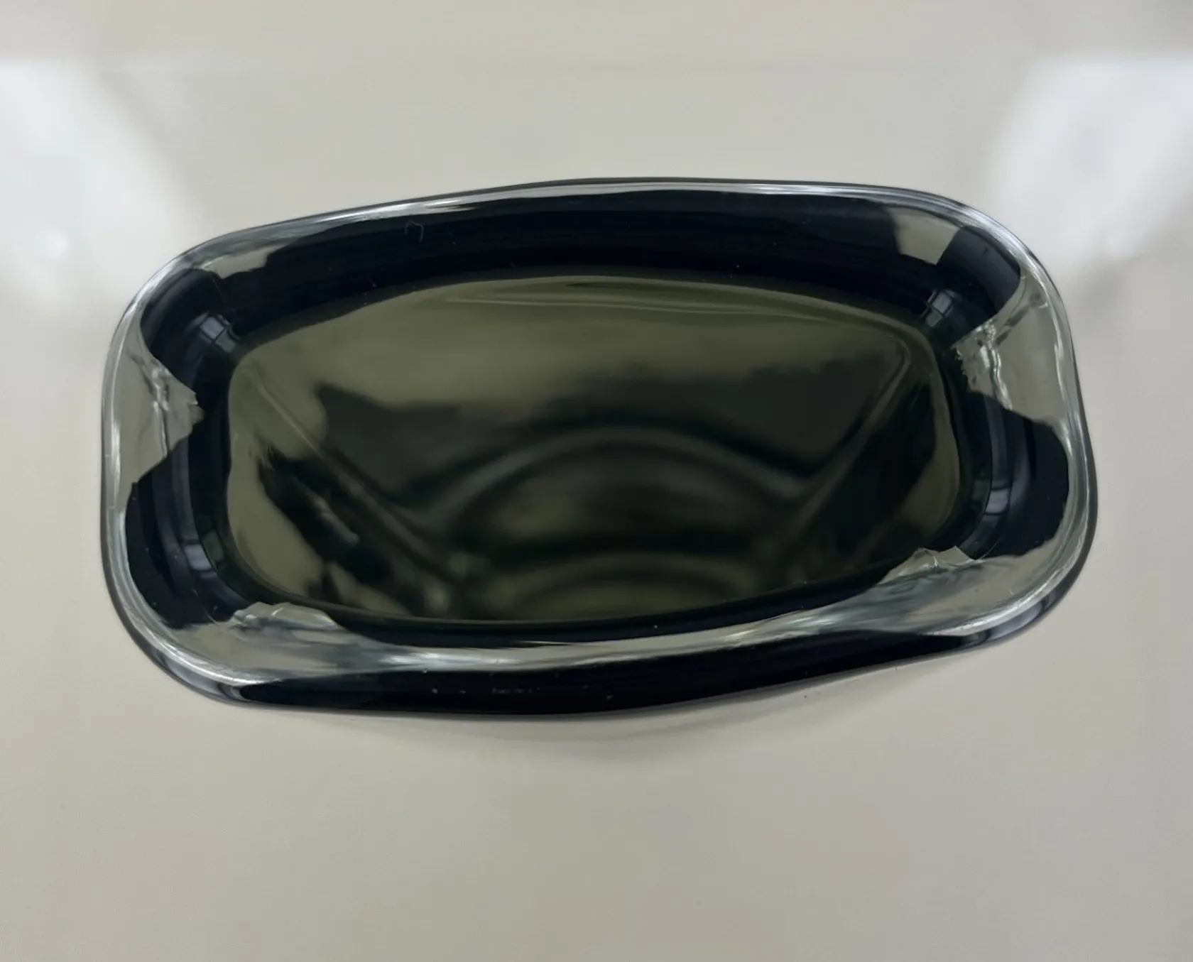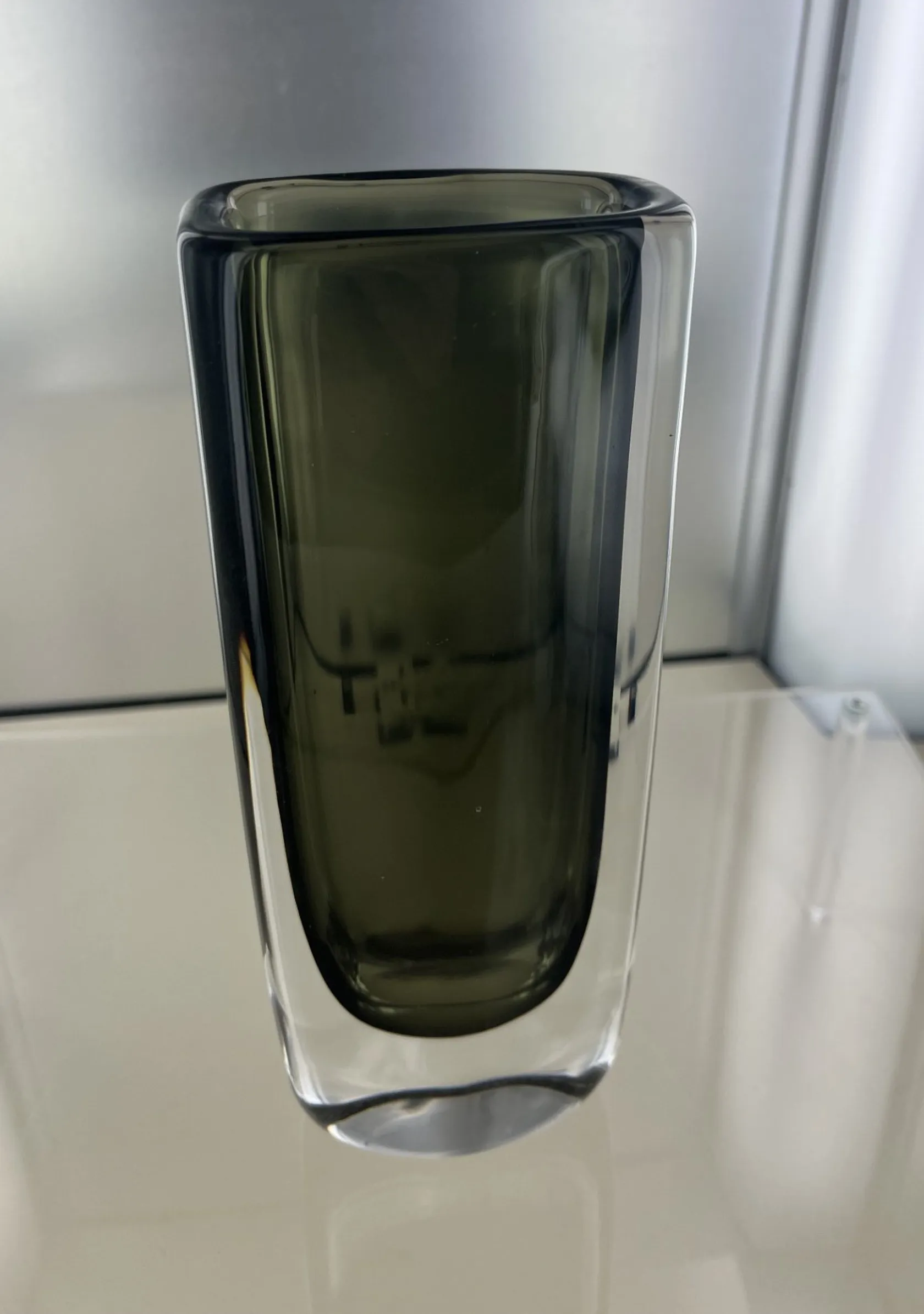 NILS LANDBERG. Signerad fyrkantig vas i klarglas med grå underfång Skickas med postpaket.