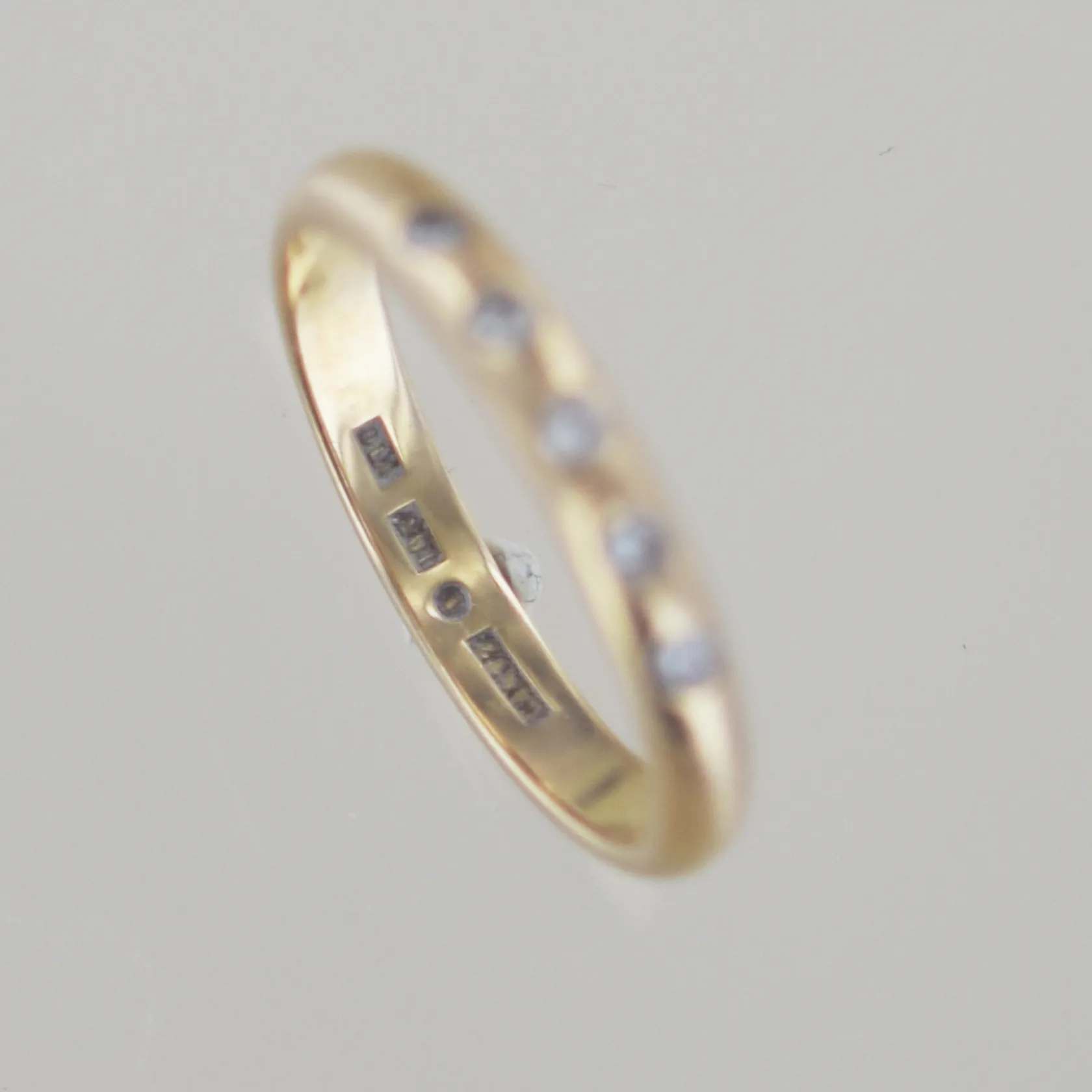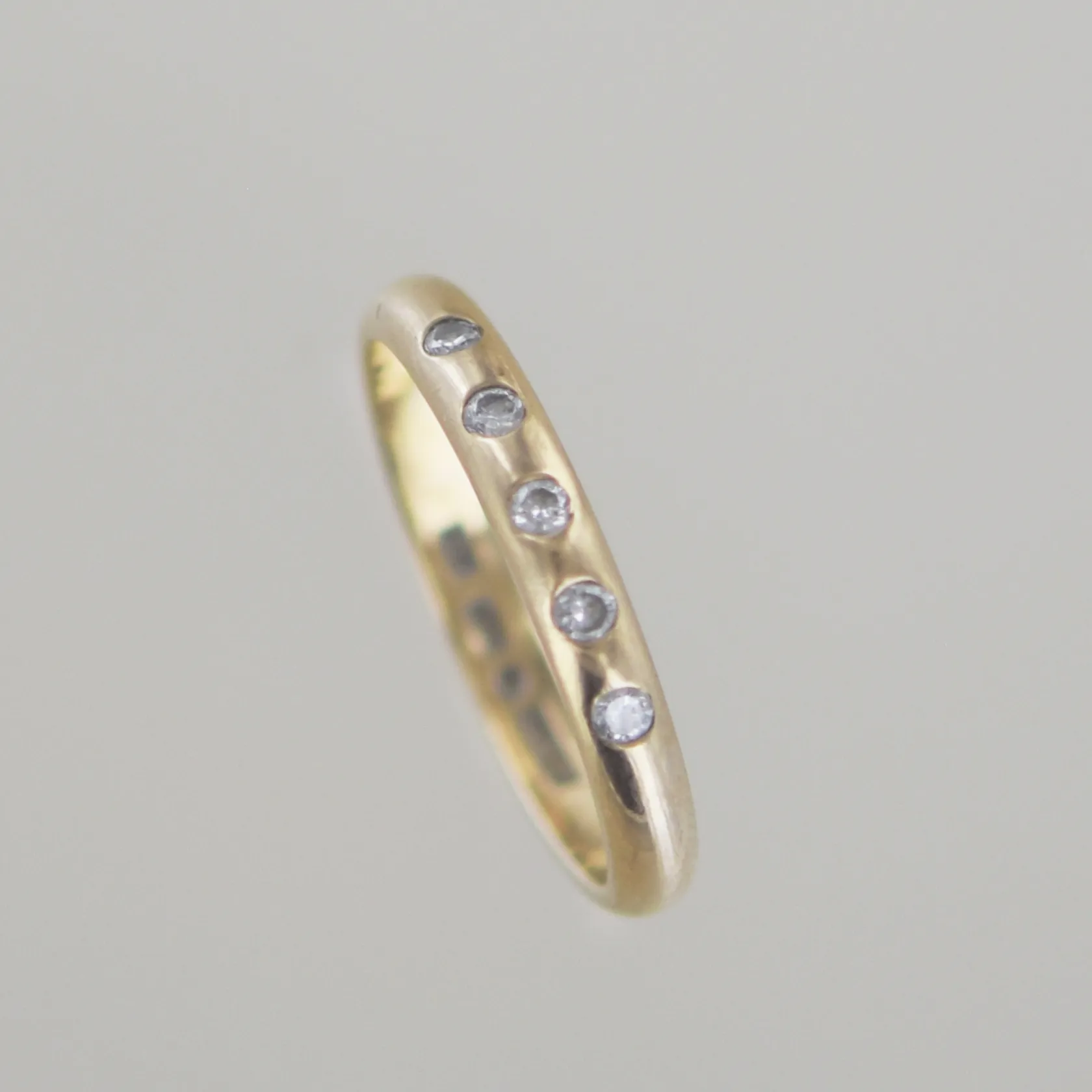Ring med diamanter 5 x 0,02ct, Ø 18 mm, bredd 3 mm, 18K Vikt: 3,4 g.