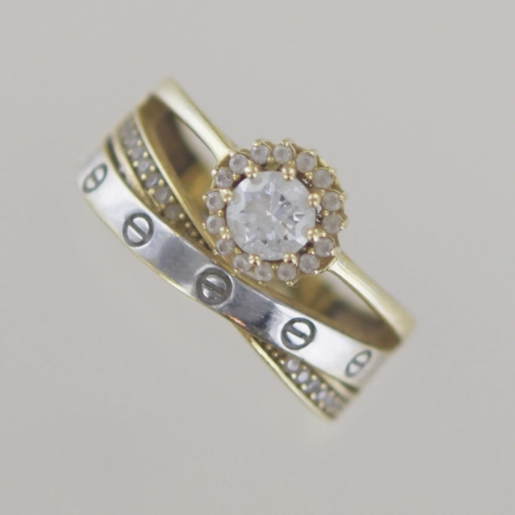 Ring med stenar, Ø 17½ mm, bredd 4 mm, 18K Vikt: 4,9 g.