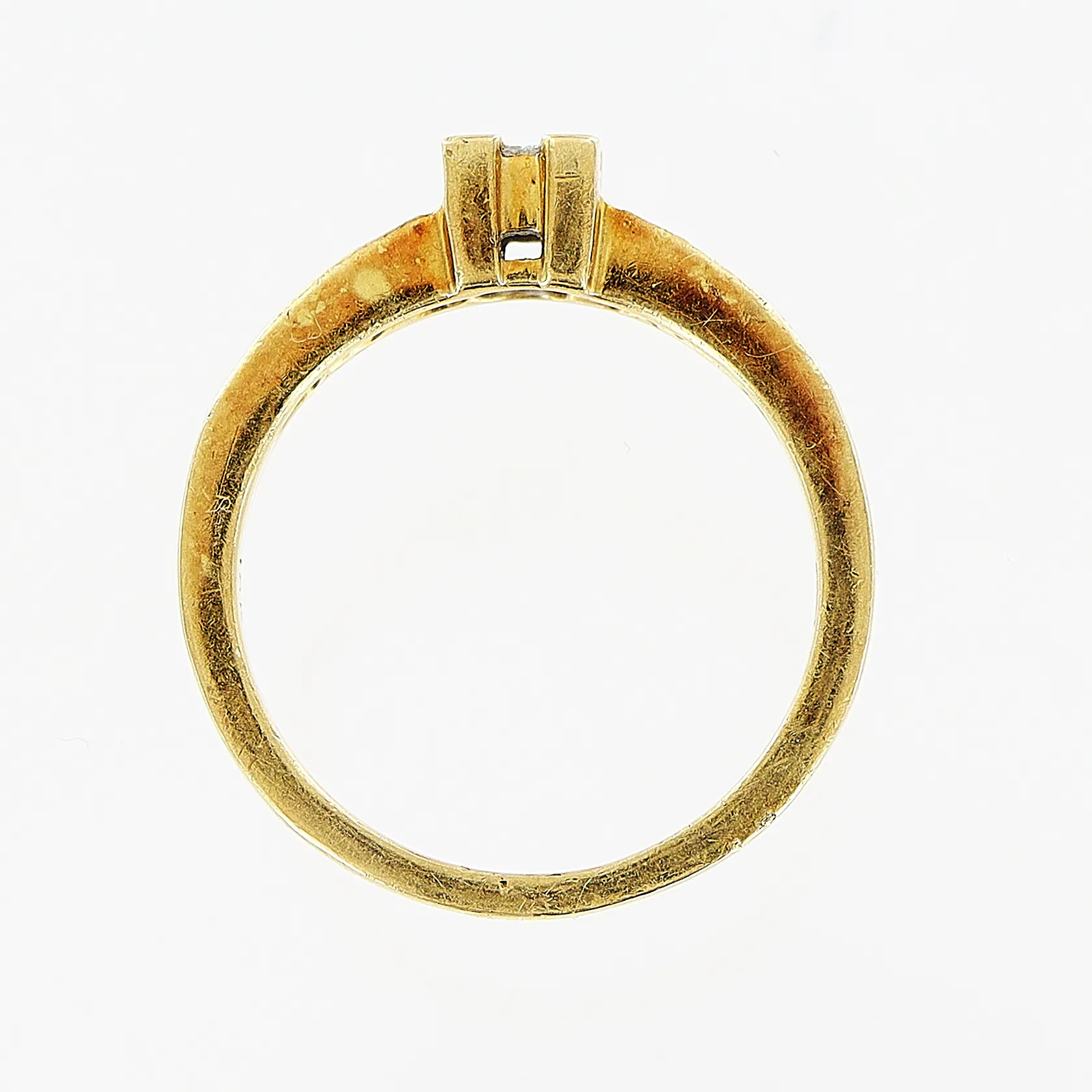 Ring stl 17, bredd 2-4,5mm, diamanter 6 x ca 0,005ct, 8/8-slipade, 4 x ca 0,05ct, prinsesslipade, GHA, 18K Vikt: 4,3 g.