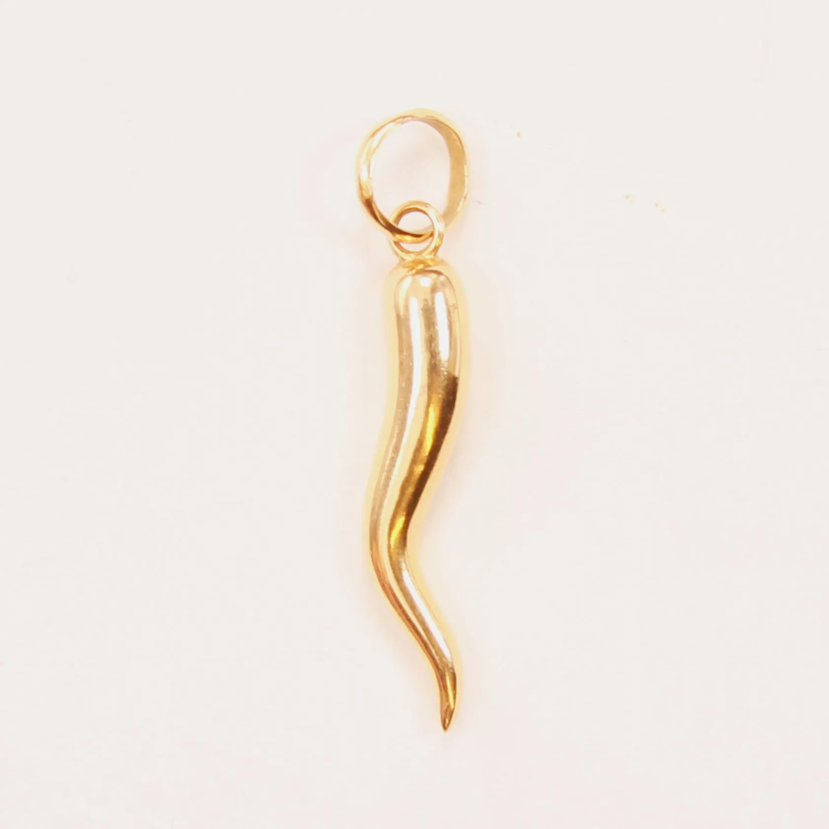 Hänge Cornicello, 32mm, ögla Ø6mm, 18K 1,8g. Vikt: 1,8 g.