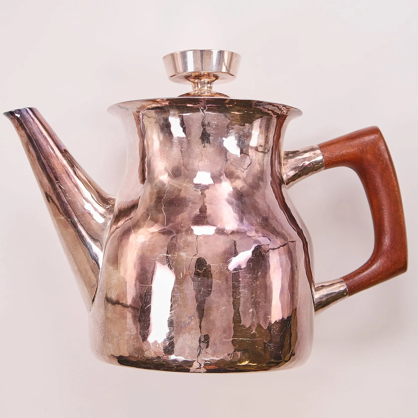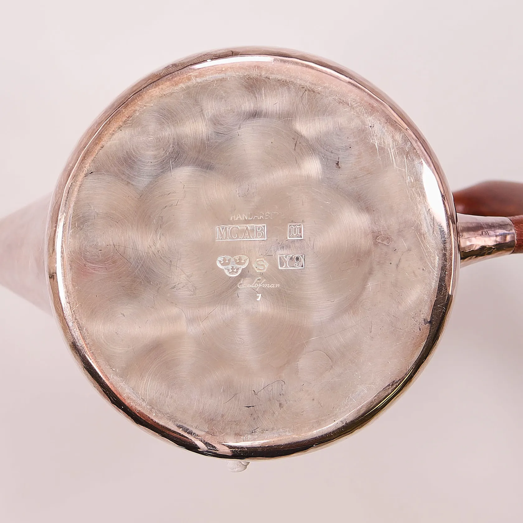 Kaffekanna, höjd 15cmträhandtag, signerad Erik Löfman, hamrad dekor, förgylld insida, MGAB år 1973, 830/1000 Silver 532,9g. Vikt: 532,9 g.