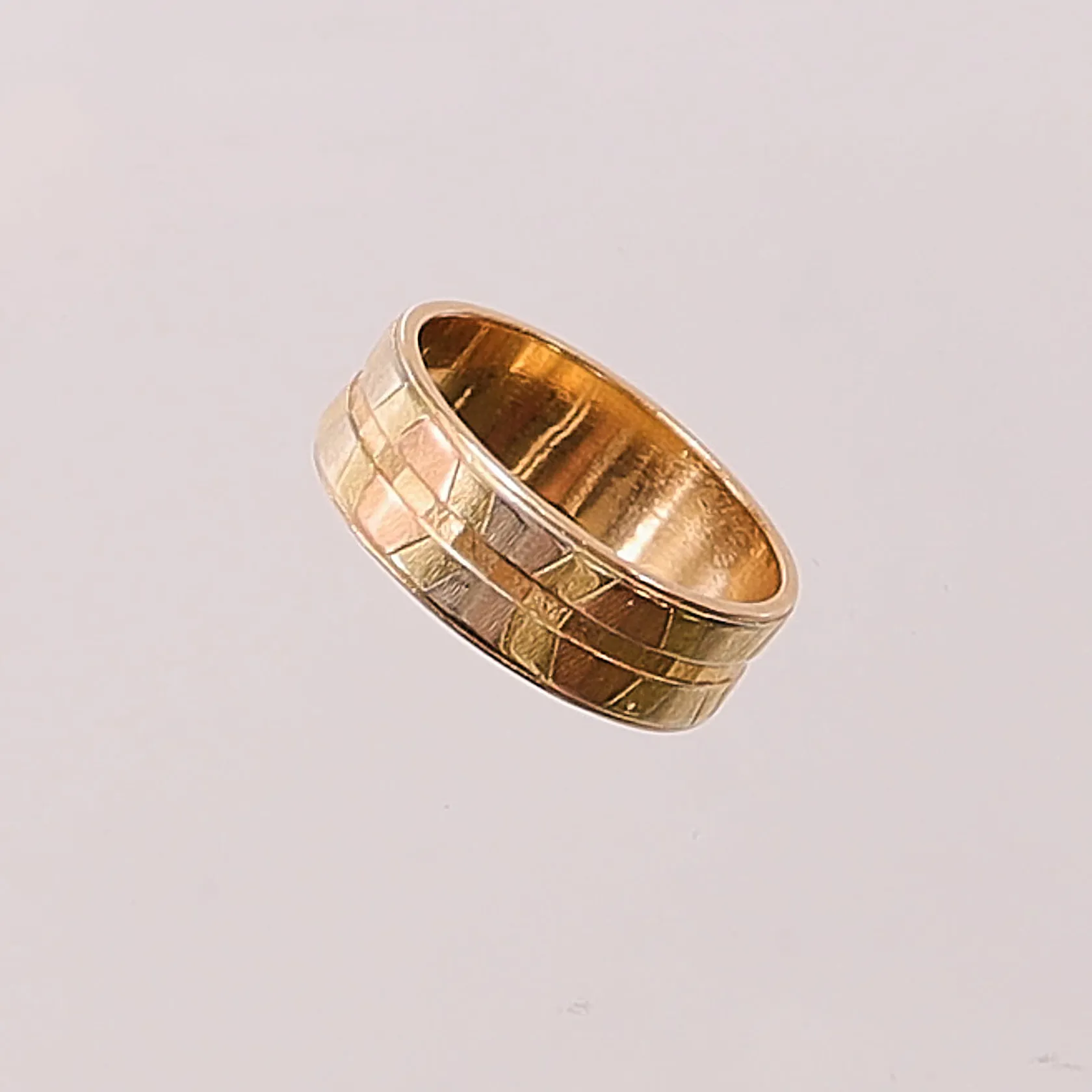 Ring, Ø18½, bredd:6mm, tricolore, dekor, 18K 6,7g. Vikt: 6,7 g.