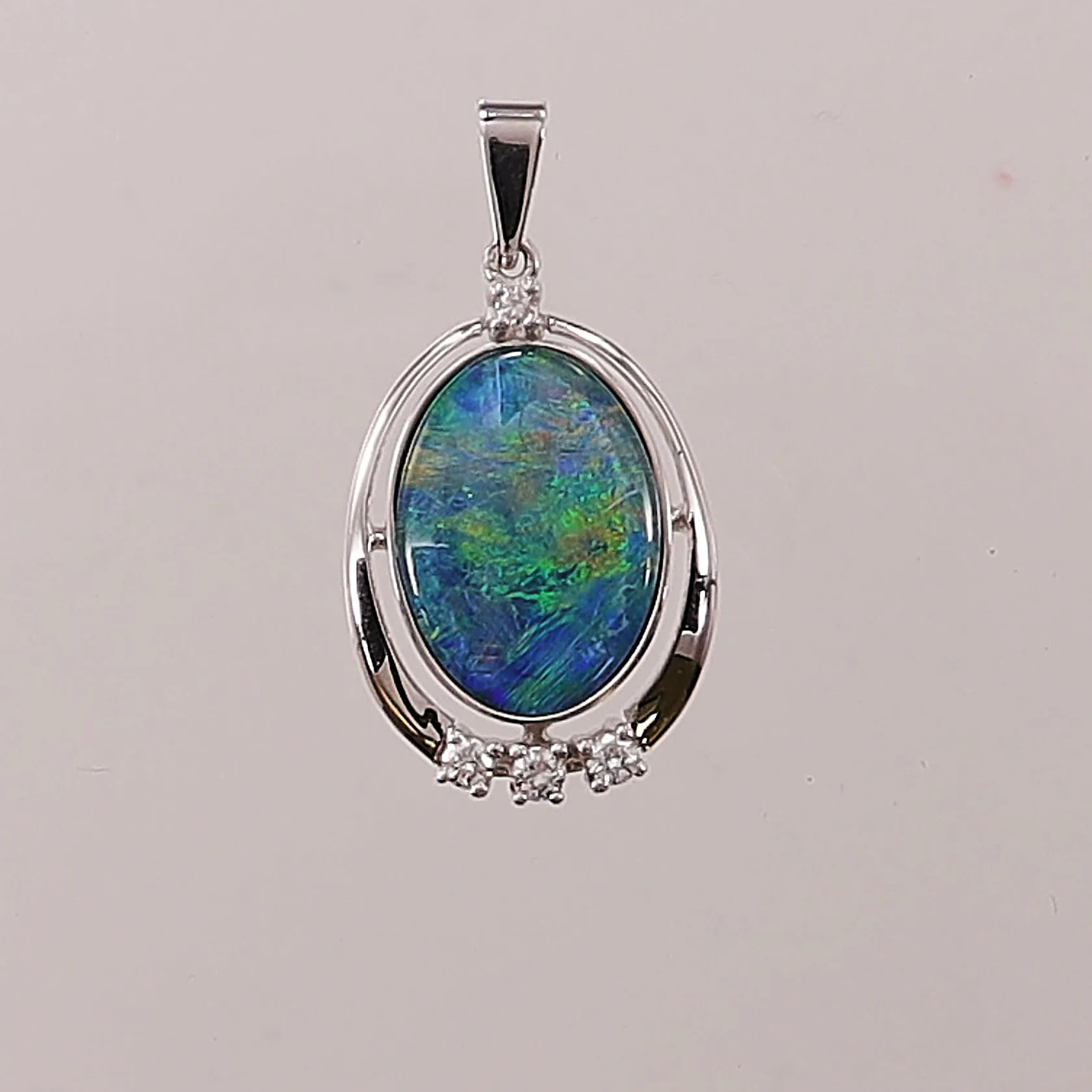 Hänge, 4x diamanter totalt ca 0,20ctv, opaldublett, 25x18mm, vitguld 18K 5,4g. Vikt: 5,4 g.