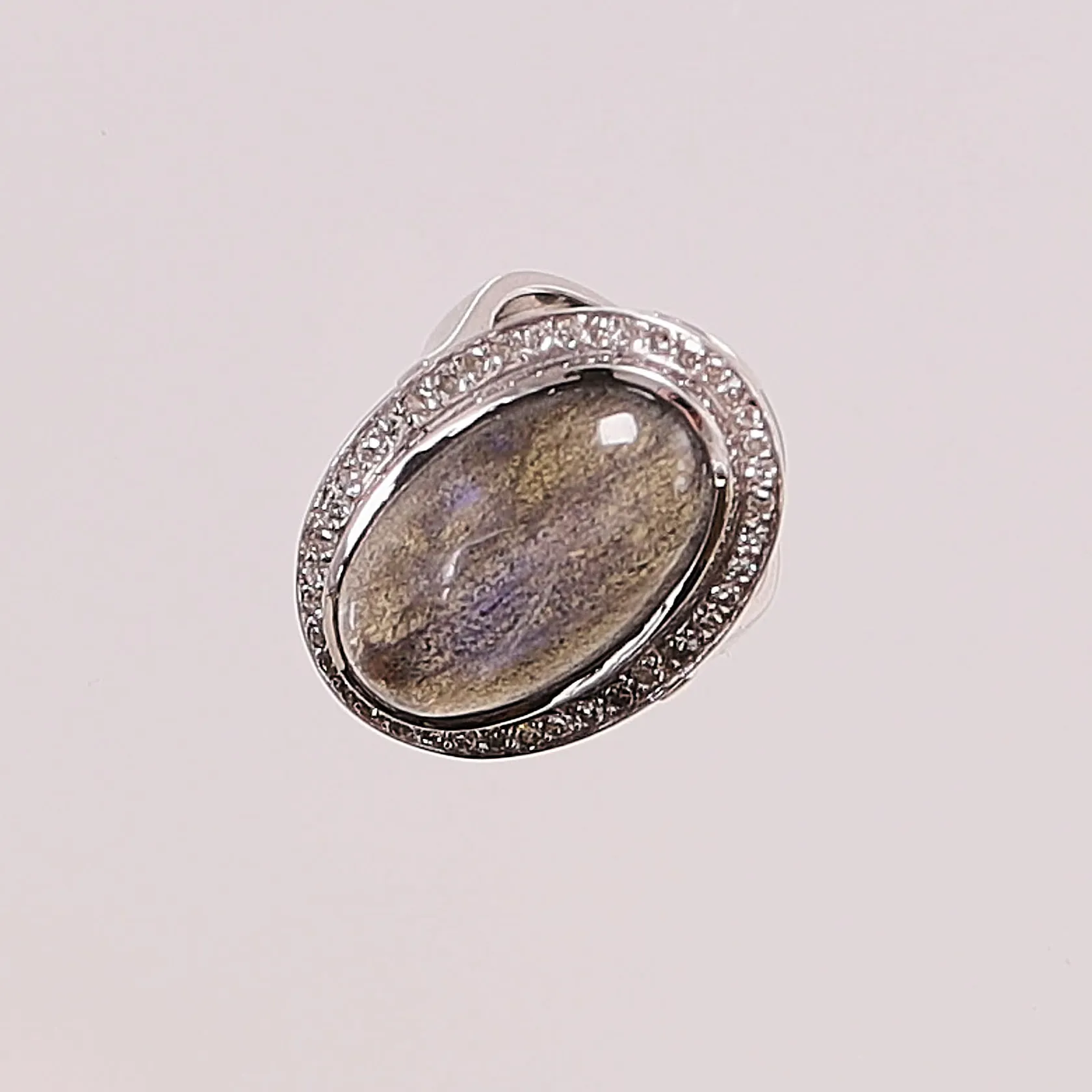 Ring, spektrolit, diamanter 42x ca 0,01ct, Ø15¾, bredd:23x17mm, Rosengren & Eriksson Guldsmedja, repig skena, vitguld, 18K 11,7g. Vikt: 11,7 g.