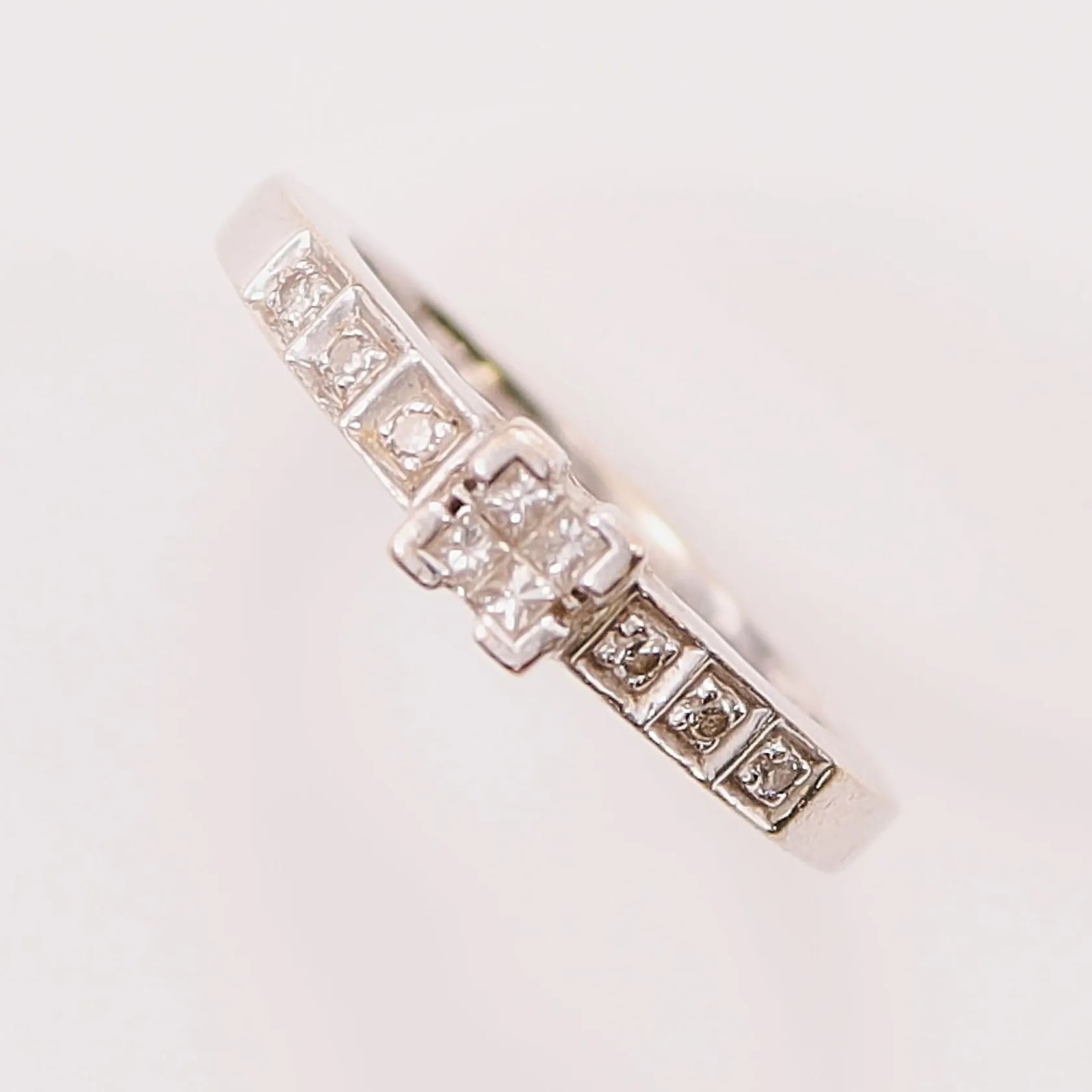 Ring, diamanter (4x princesslipade ca 0,03ct + 6x briljantslipade ca 0,01ct), Ø17, bredd:5mm, bör omrodieras, 18K 5,1g. Vikt: 5,1 g.