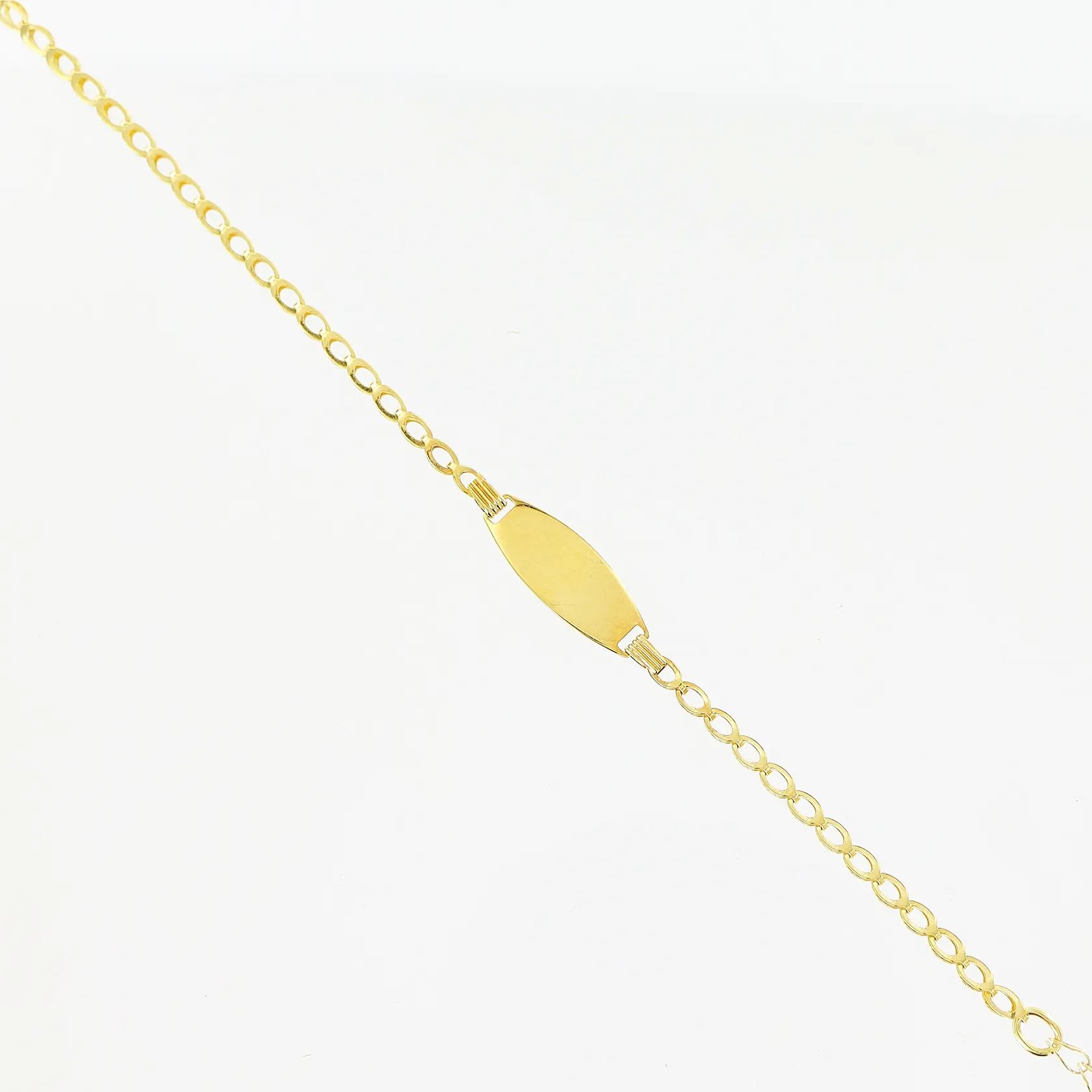 Barnarmband med platta, justerbar storlek 14/16cm, bredd 2-6mm, 18K. Vikt: 2,2 g.