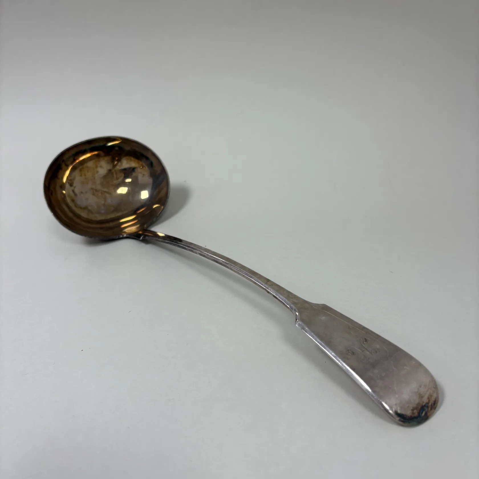 Slev, 33cm, monogramgravyr, nysilver, engelska stämplar.