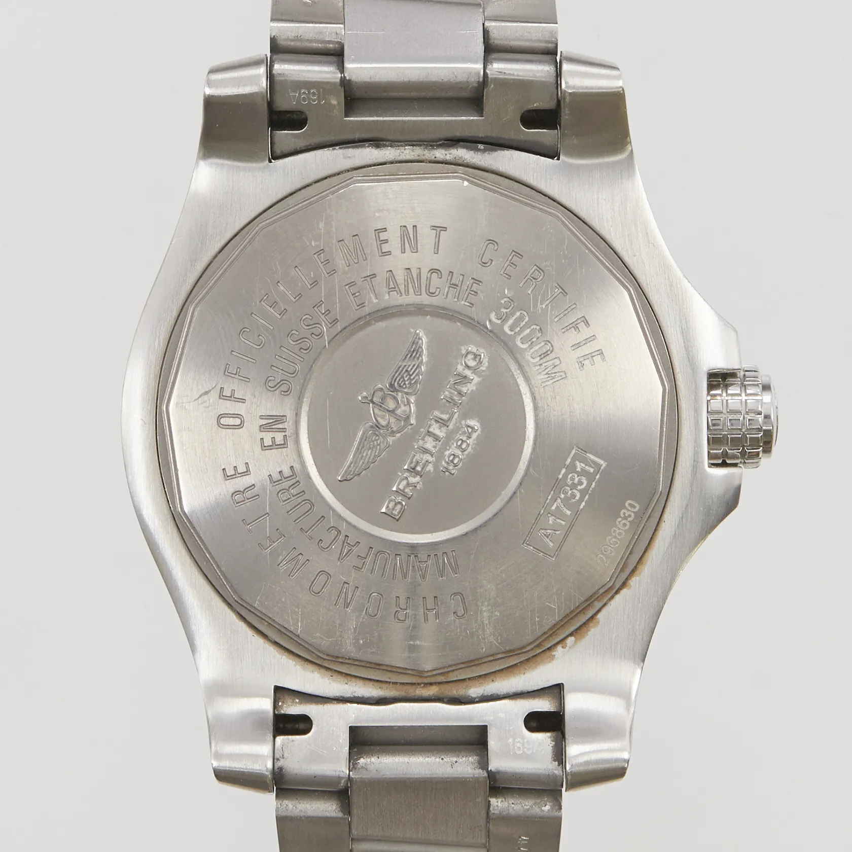 Herrur Breitling Avenger II Seawolf, 44mm, stål, automatisk, ref:A1733110/BC31, serienr:2968630, Cal. B17, safirglas, datum, professional III länk, digitalt certifikat Bergströms Ur Uppsala 16-09-2017, manual, chronometercertifikat, bruksslitage, dykring saknar spärr, 2 extra länkbitar, box, ytterkartong.