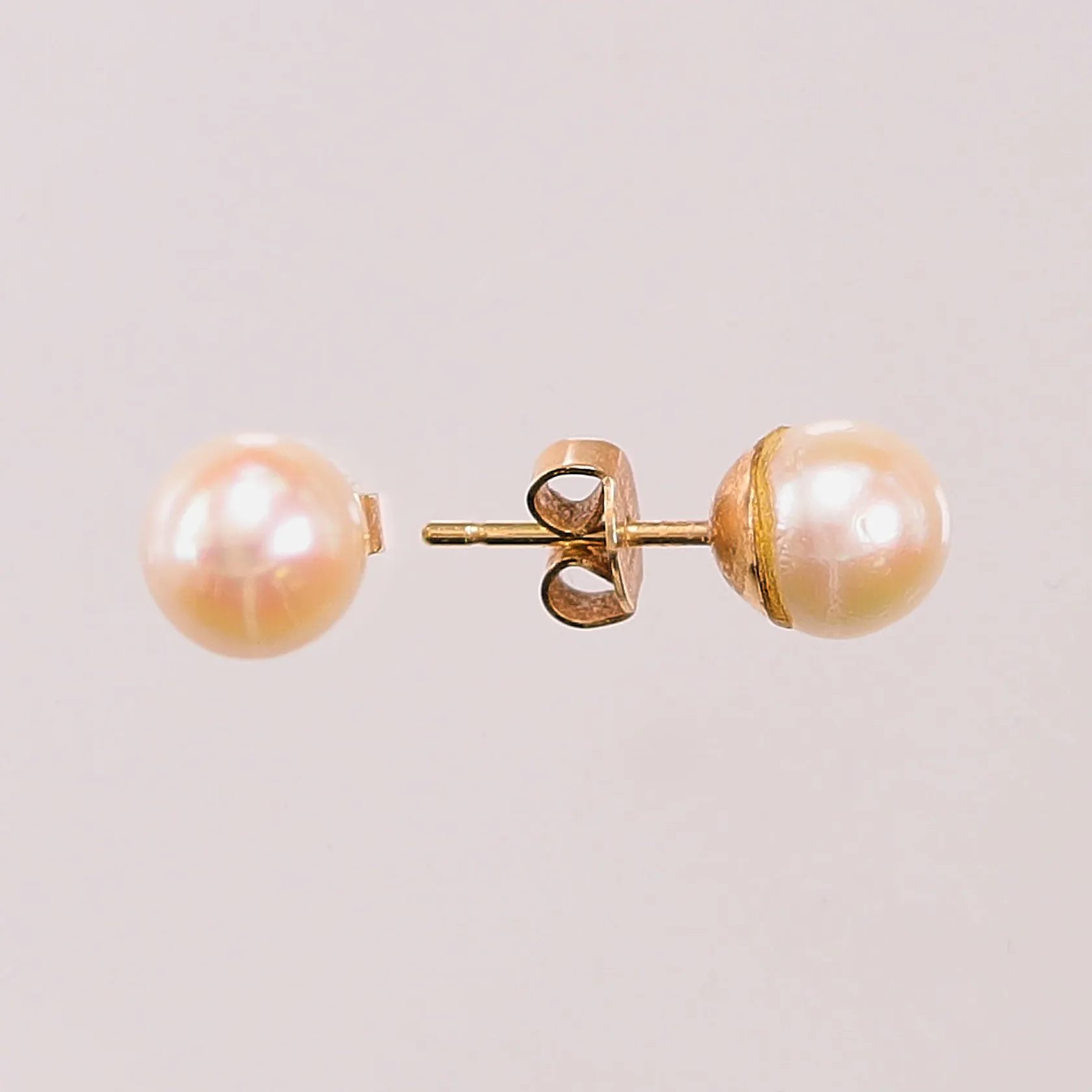 Ett par örhängen, odlade sötvattenspärlor ca 7mm, 18K 1,8g. Vikt: 1,8 g.