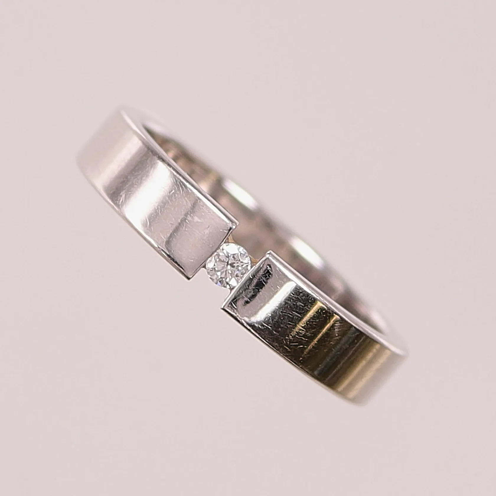 Ring, diamant 0,05ct, Ø17½, bredd:4mm, vitguld, gravyr, 18K 5,9g. Vikt: 5,9 g.