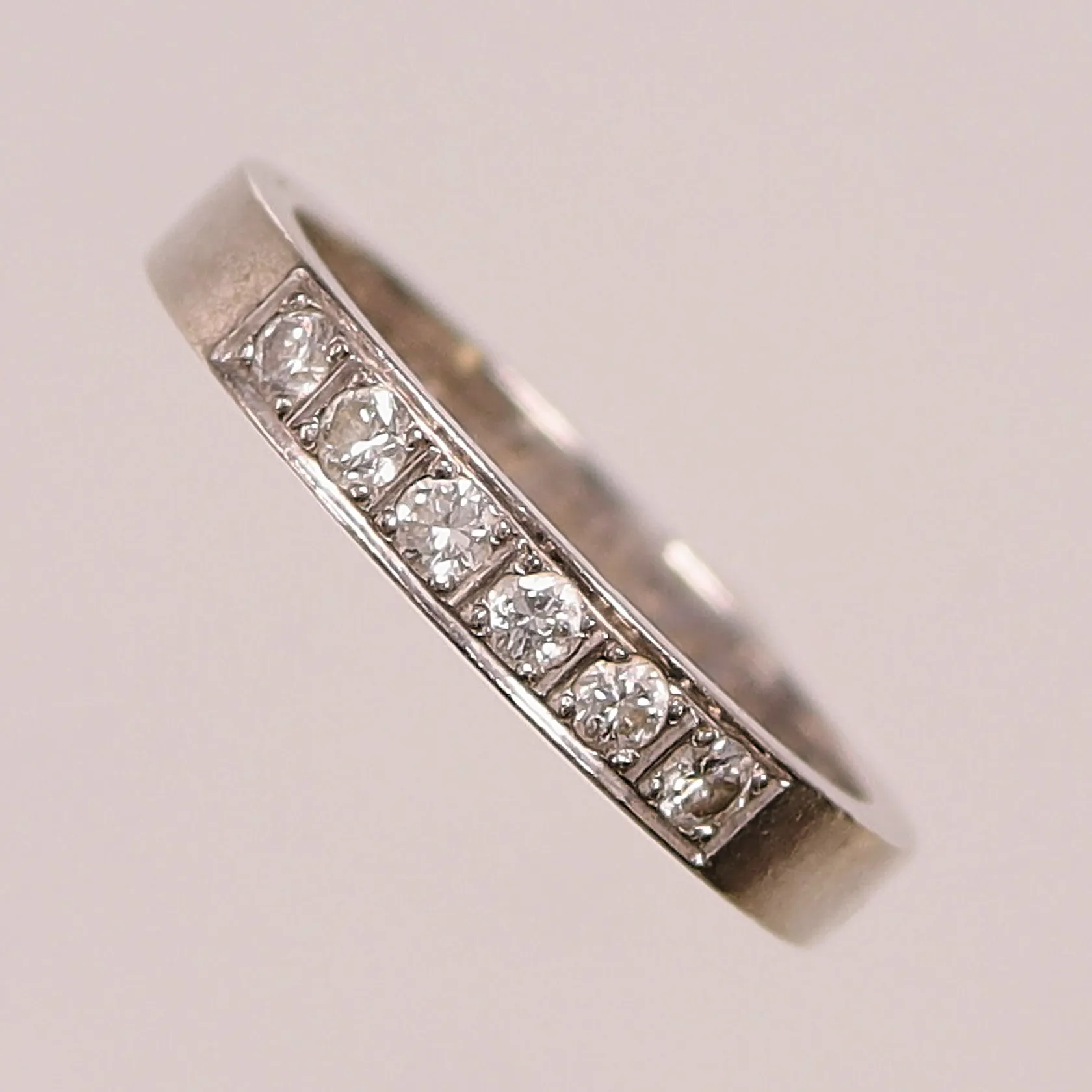 Ring, 6x diamanter totalt 0,30ctv, Ø18, bredd:3mm, gravyr, vitguld 18K 4,7g. Vikt: 4,7 g.