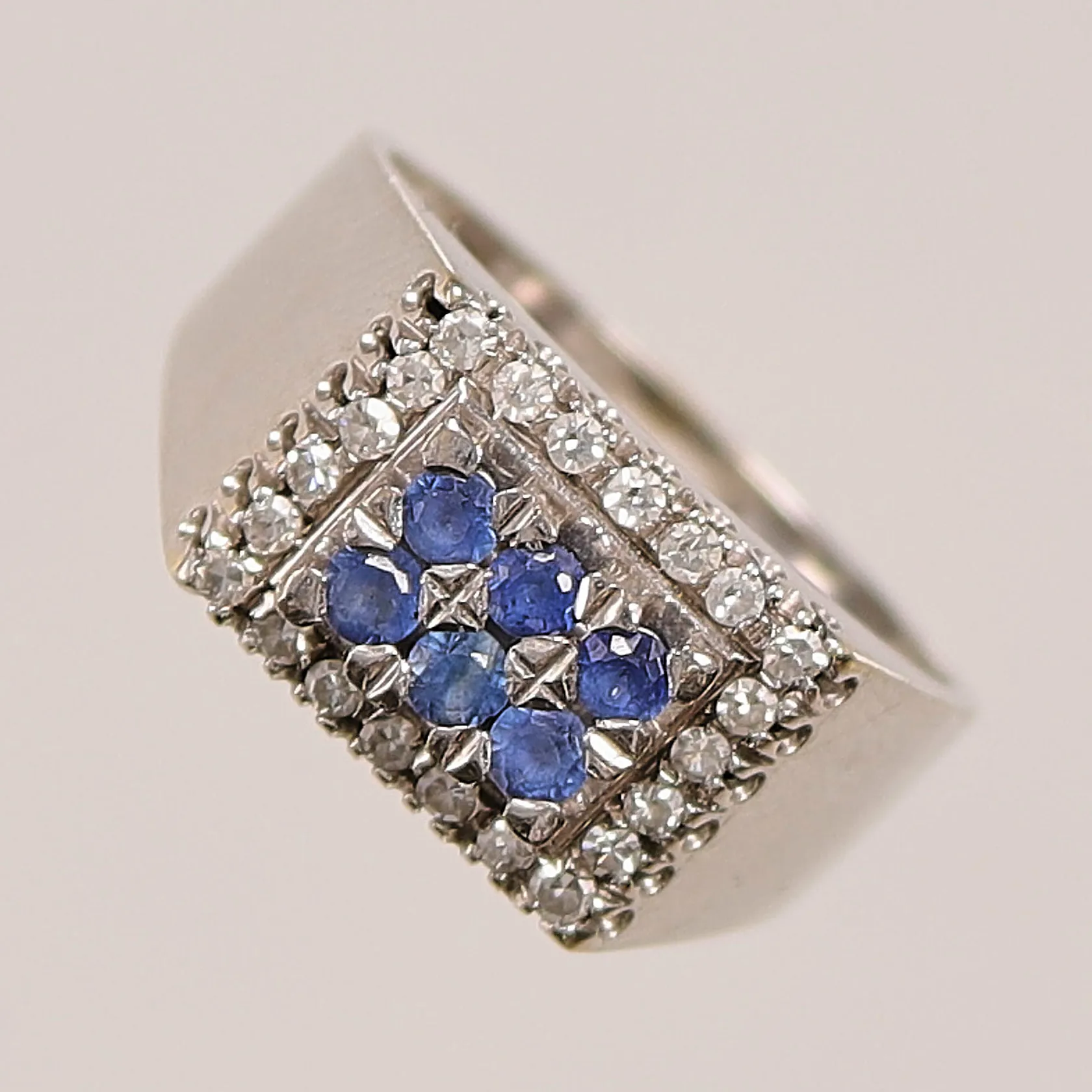 Ring, diamanter 22x ca 0,01ct, Ø16½, bredd:9mm, blå stenar, vitguld 18K 6,3g. Vikt: 6,3 g.