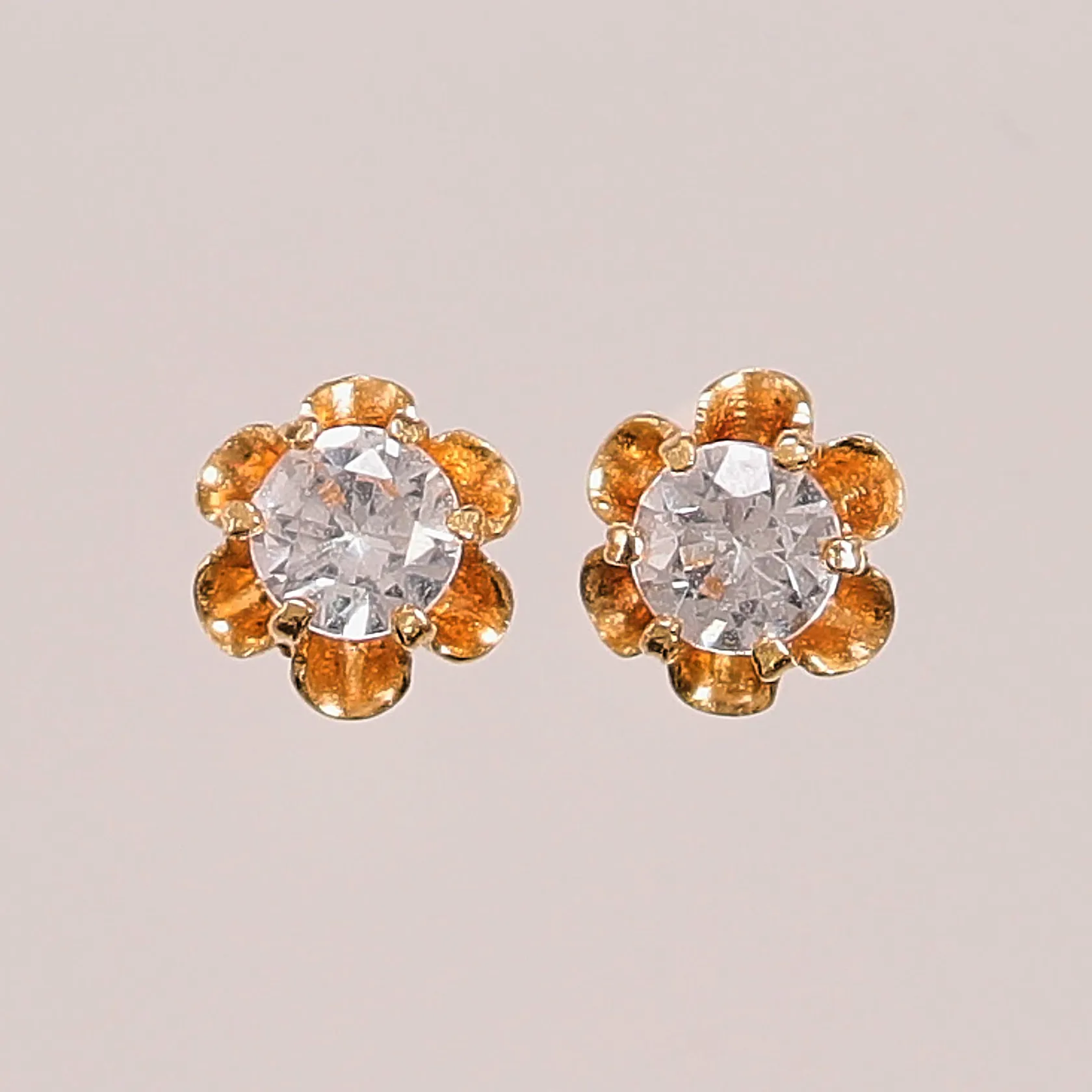 Ett par örhängen, 6mm, vita stenar, plaststopp, 18K 1,3g. Vikt: 1,3 g.