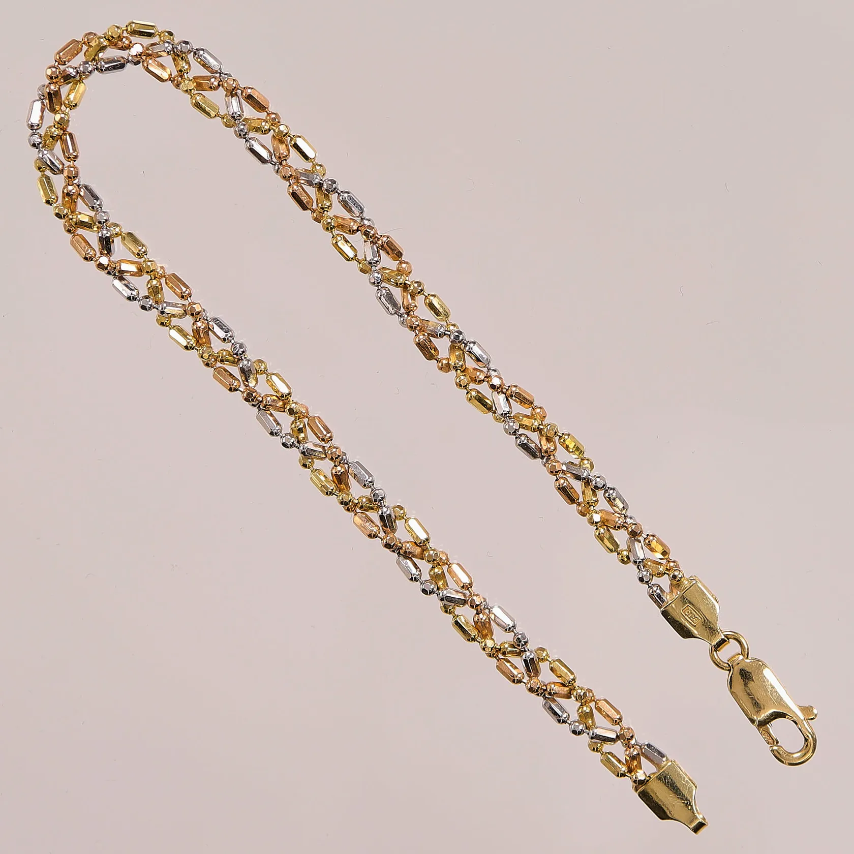 Armband, flätat,18,5cm, bredd:4mm, tricolore, Guldfynd, 18K 6,9g. Vikt: 6,9 g.