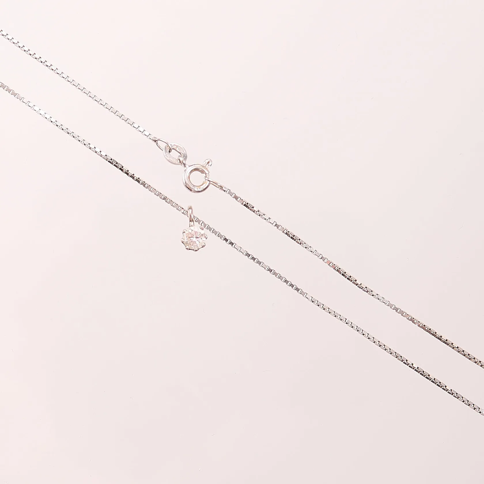 Kedja, 38cm, bredd: 1,1mm, integrerat hänge, diamant ca 0,30ct, italienska stämplar, vitguld 18K 3,1g. Vikt: 3,1 g.