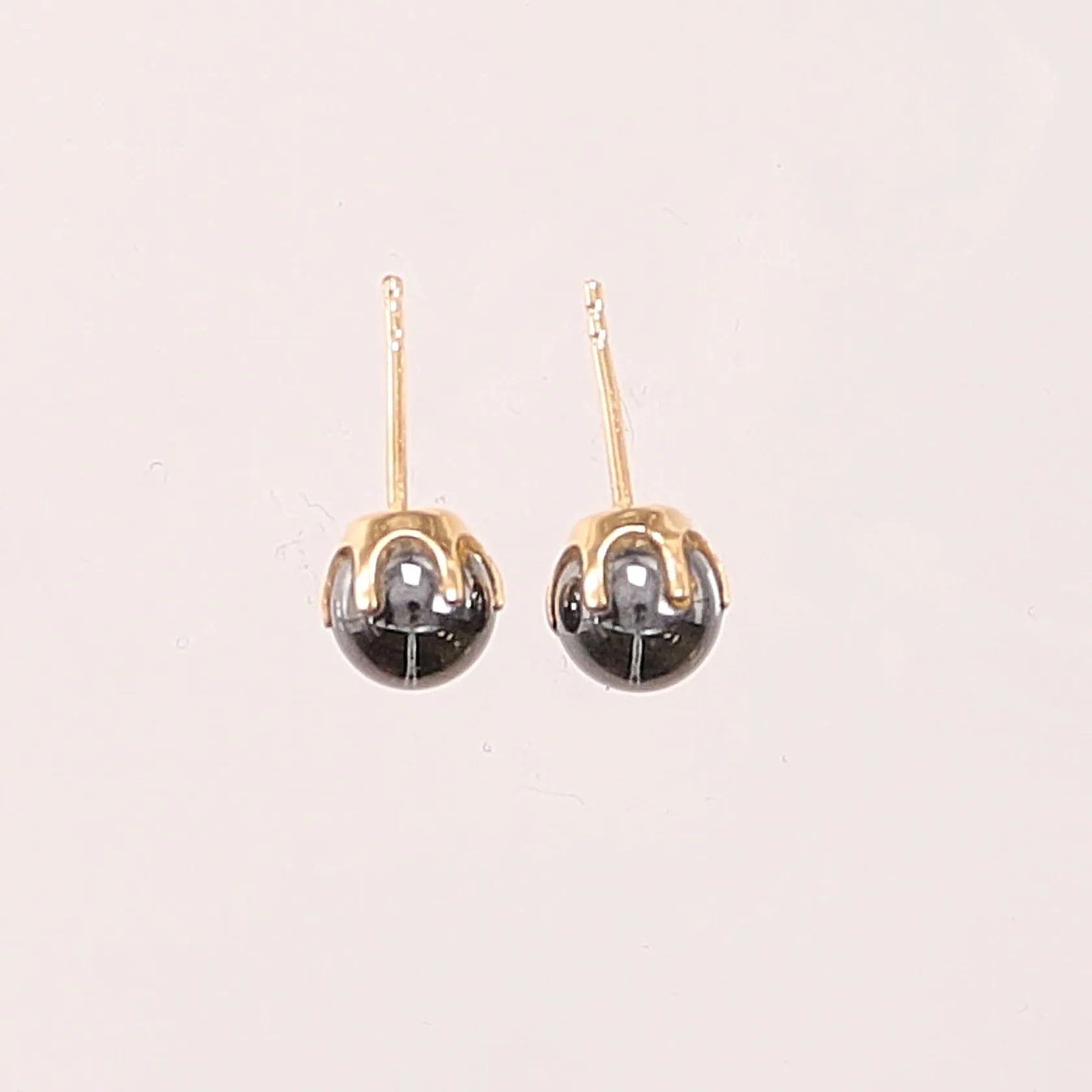 Ett par örhängen, hematit, 6mm, plaststopp, 18K 1,8g. Vikt: 1,8 g.