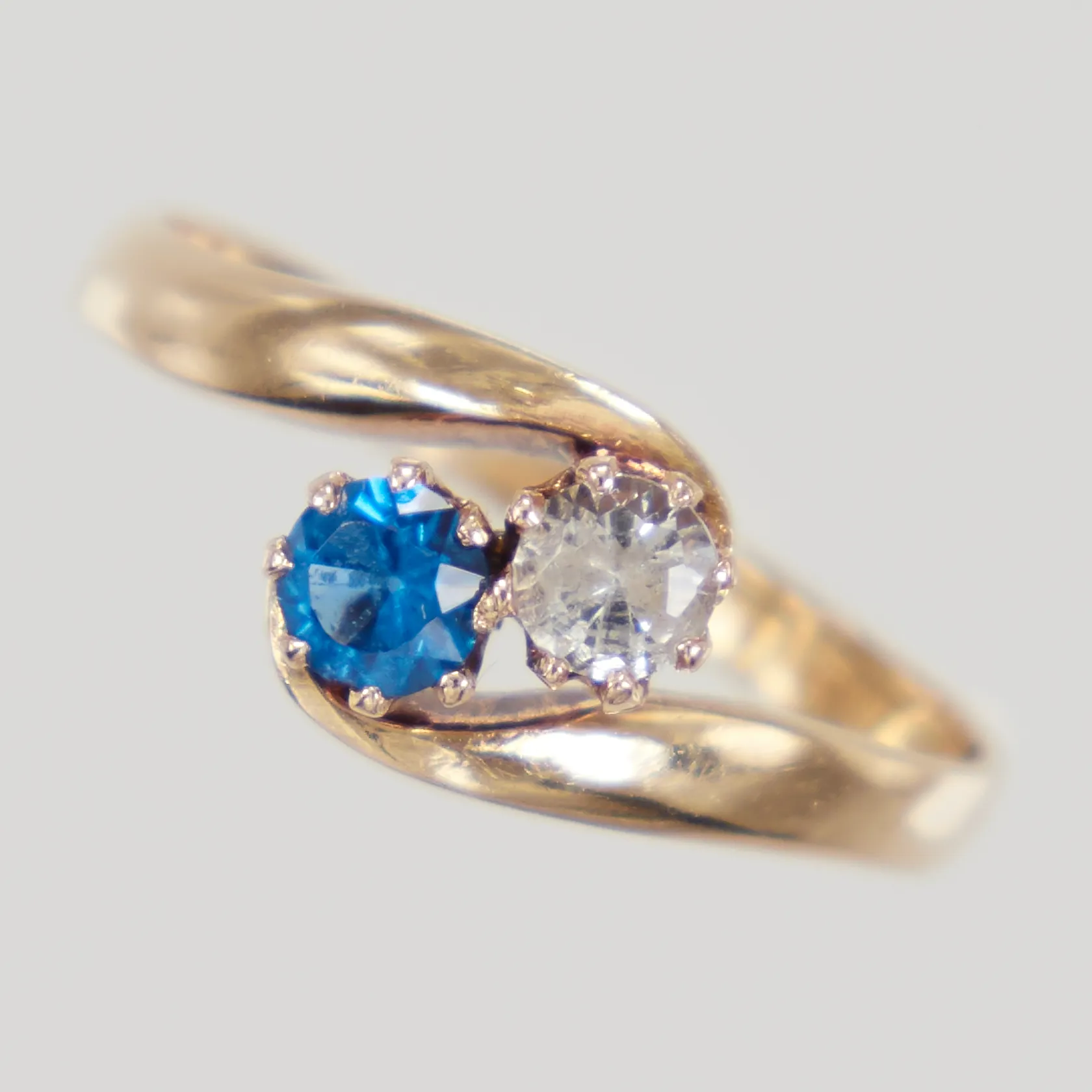 Ring, vit/blå stenar, stl 16½, bredd 2-6mm, 18K Vikt: 2,4 g.