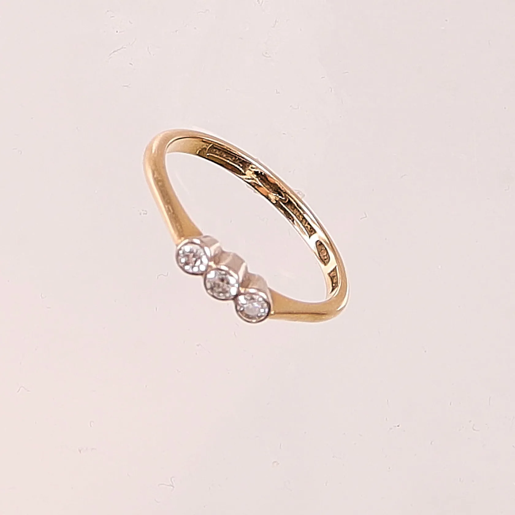 Ring, diamanter 3x ca 0,07ct, Ø19½, bredd:3mm, 18K 3,2g. Vikt: 3,2 g.