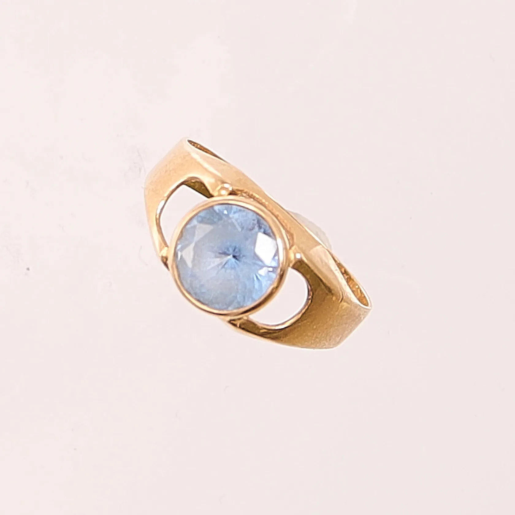 Ring, Ø17½, bredd:9mm, blå sten, 18K 2,5g. Vikt: 2,5 g.