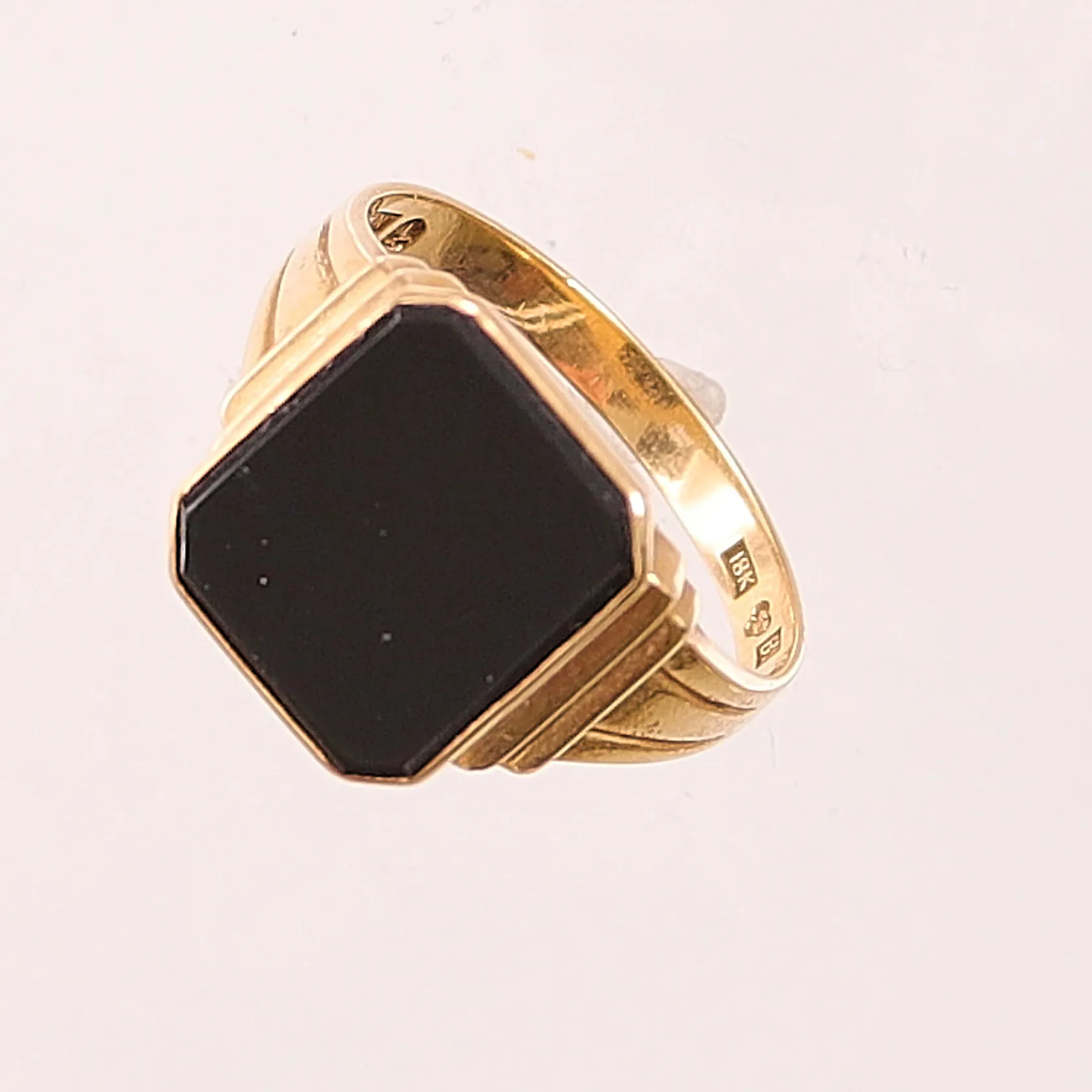 Klackring, Ø19½, bredd:14mm, onyx, 18K 4,4g. Vikt: 4,4 g.