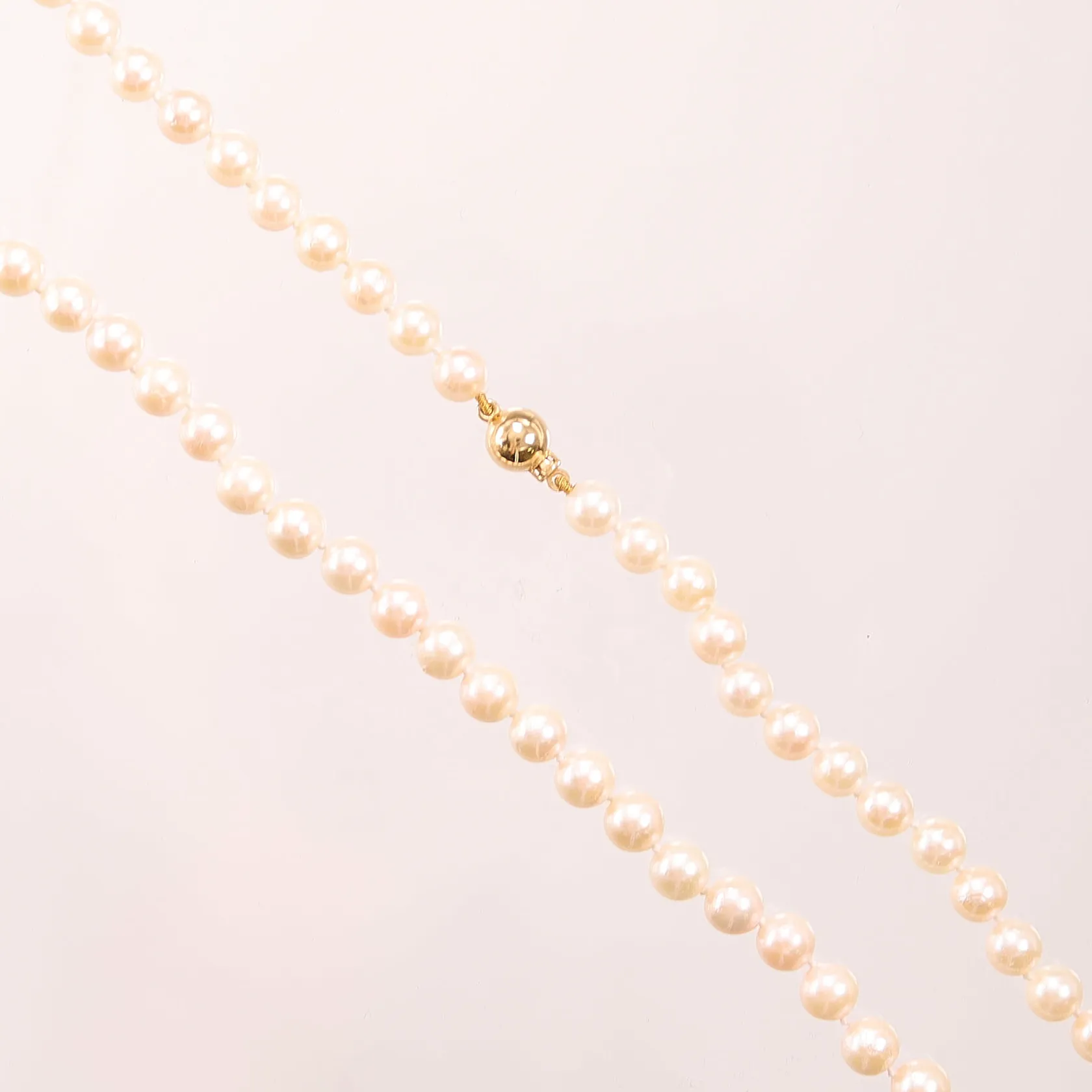 Pärlcollier, 46cm, odlade sötvattenbspärlor ca 6mm, lås i 18K.