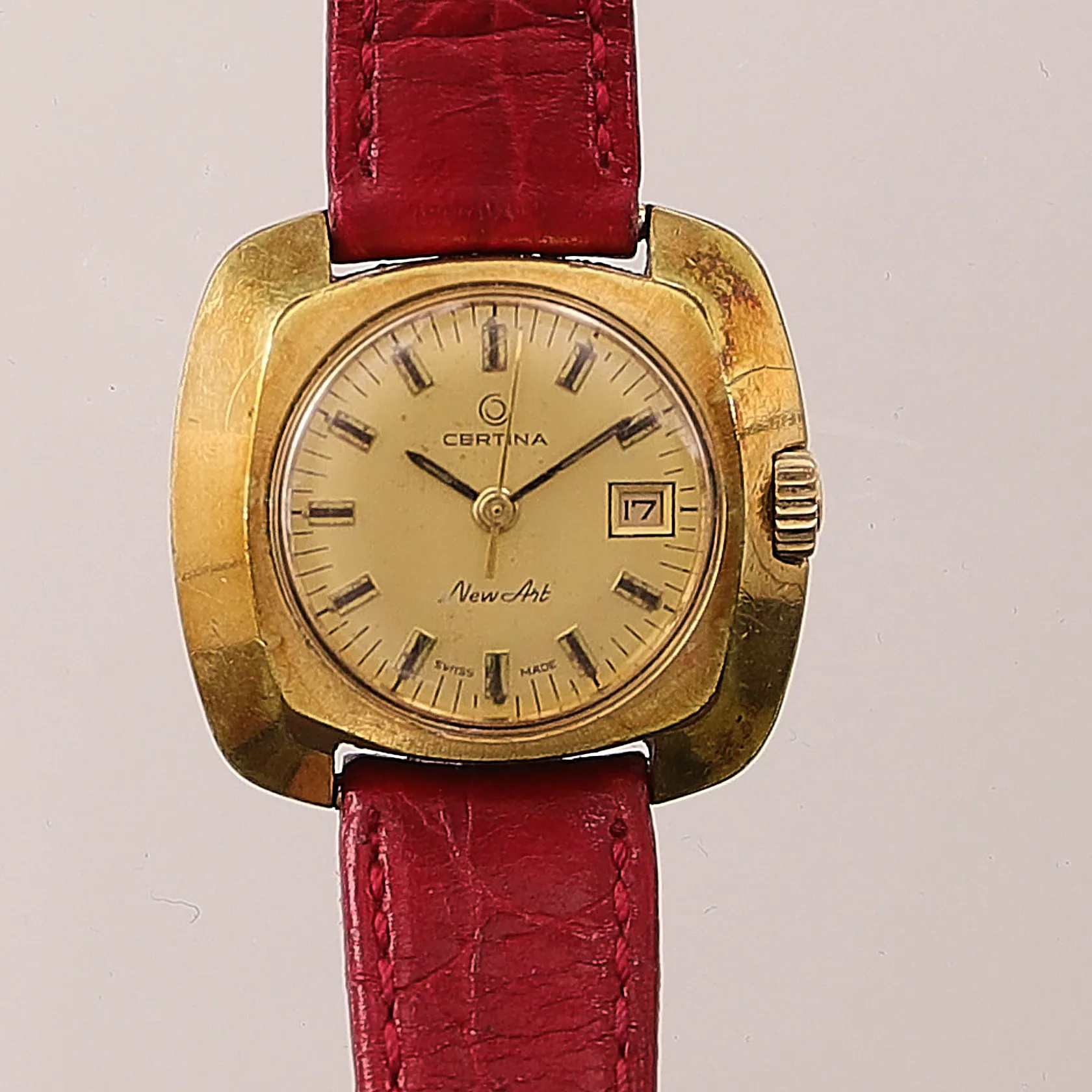 Damur Certina, 27mm, förgylld, boettnr:1805.213/8329890, sliten förgyllning, läderband.