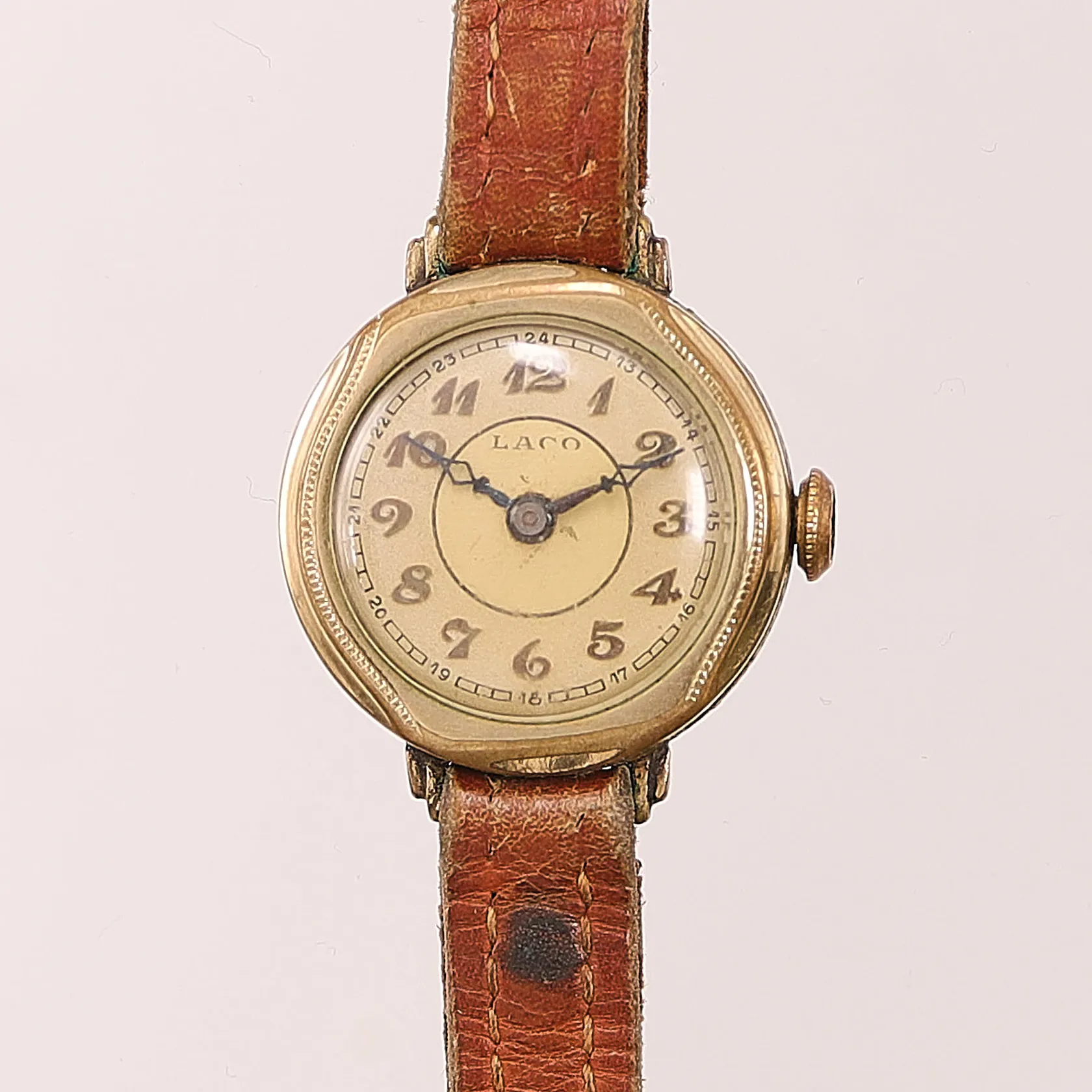 Damur Laco, 21,3mm, doublé, manuell, gravyr, slitet läderband ej original, inga tillbehör