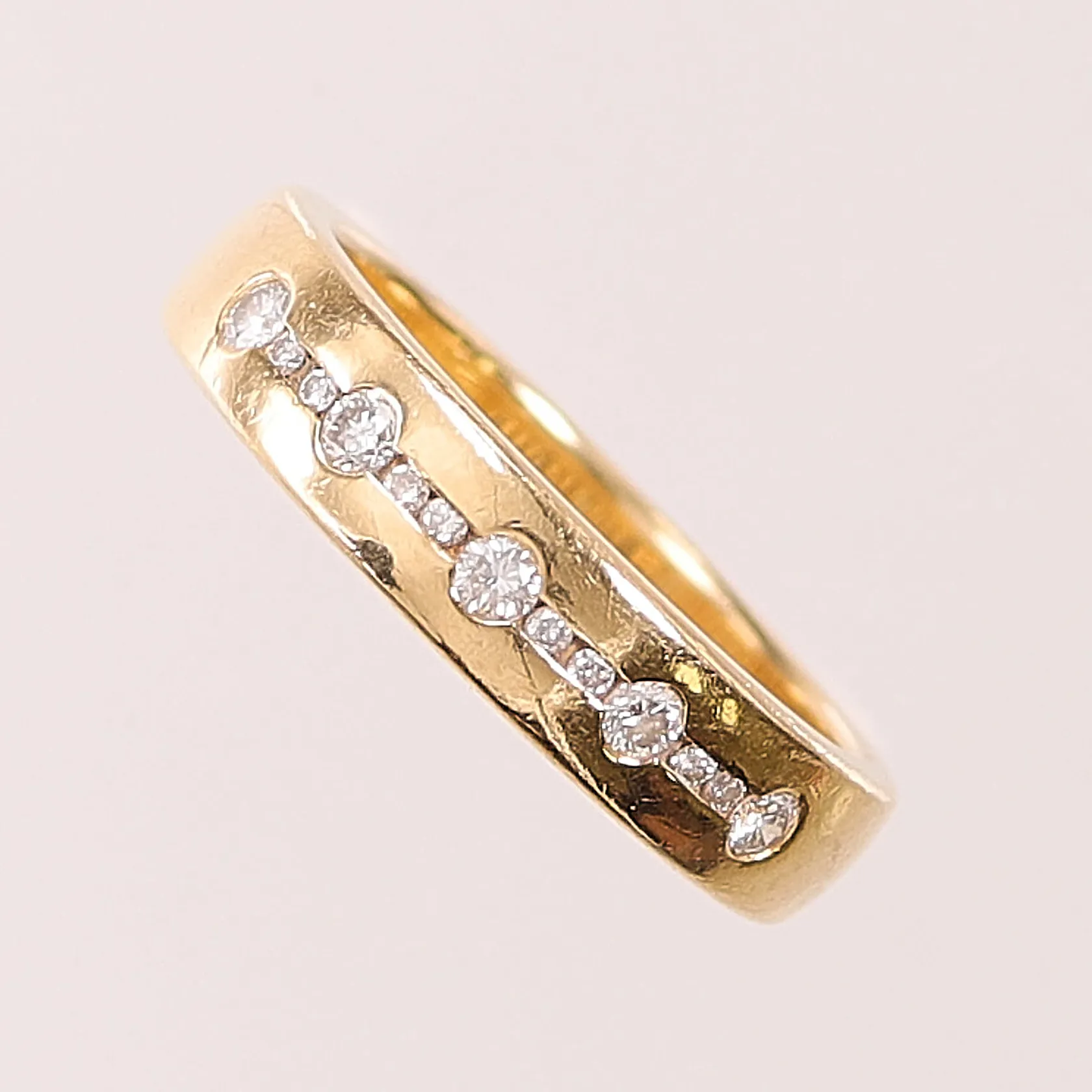 Ring med 13 diamanter, 0,26ctv enligt gravyr, Ø18½, bredd: 4,8mm, Engelbert, gravyr, 18K8,6g. Vikt: 8,6 g.