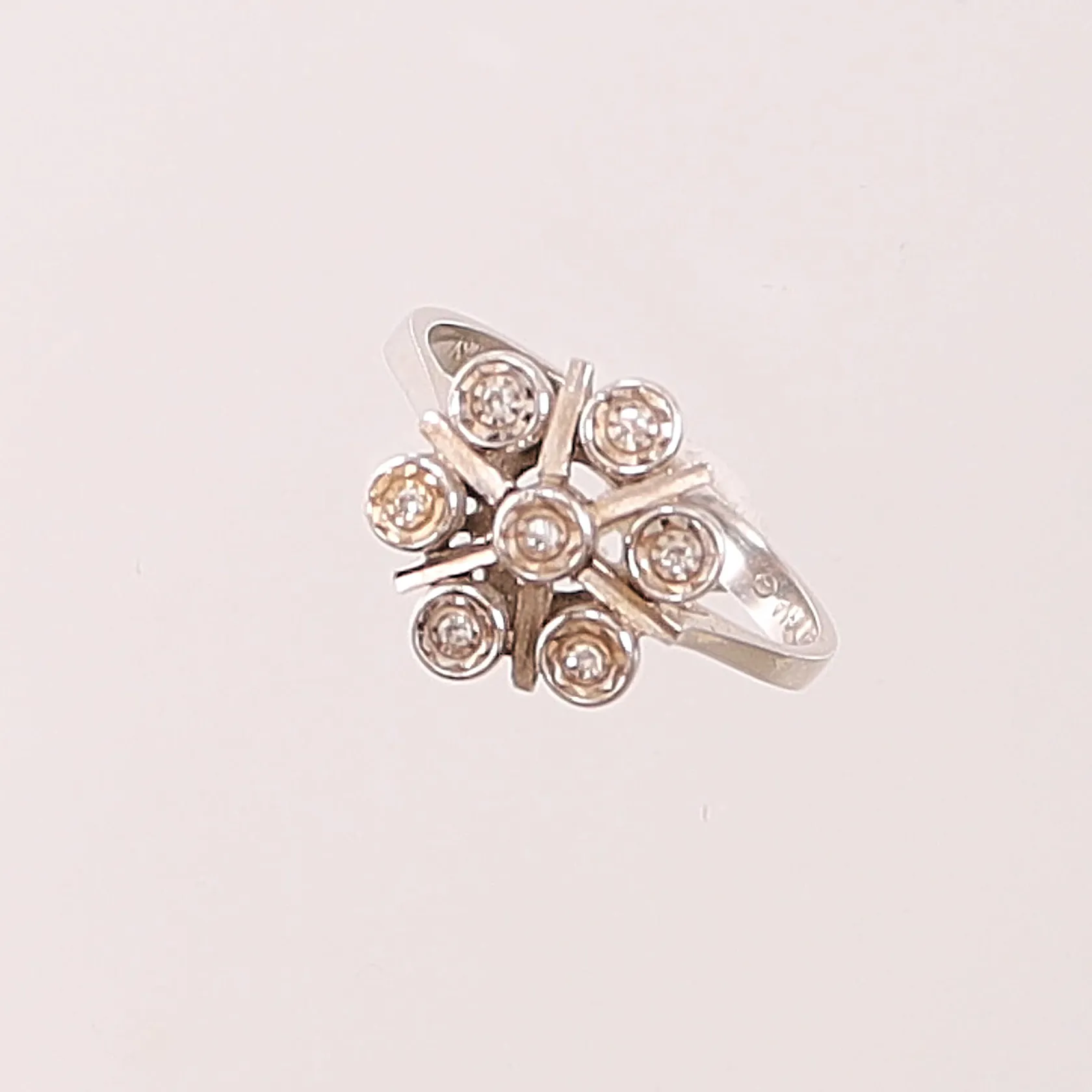Ring med diamanter 7 x ca. 0,01ct,m Ø18, bredd: 2,5-13,1mm, importstämpel, vitguld, 18K, 3,6g Vikt: 3,6 g.