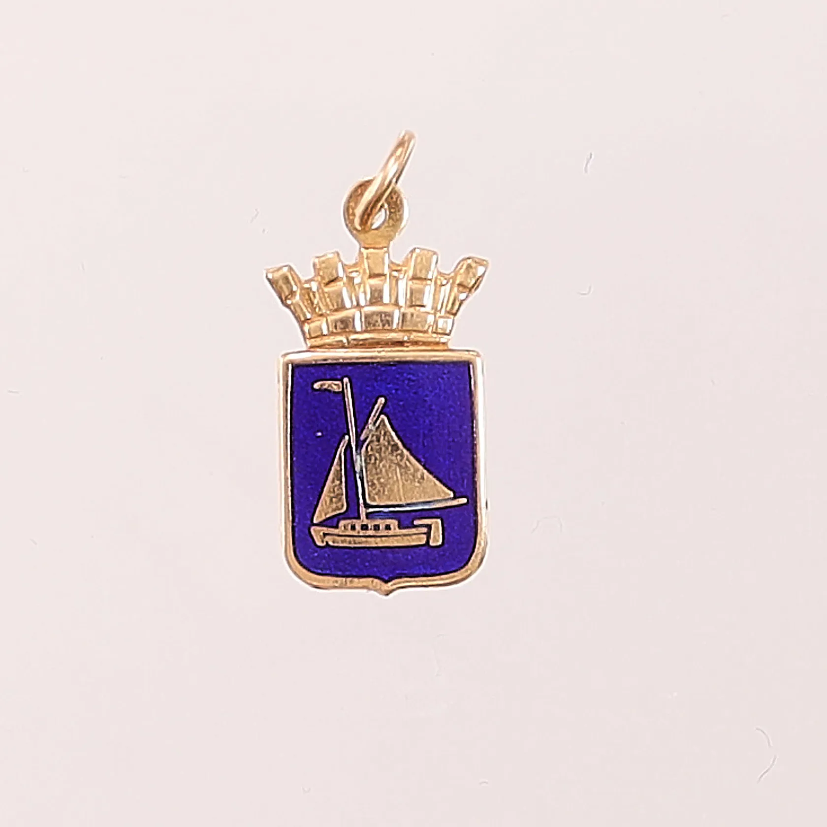 Hänge, emalj med segelbåt, 20mm, Lagerströms Fabriks Aktiebolag , Stockholm år 1972, 18K, 1,8g. Vikt: 1,8 g.