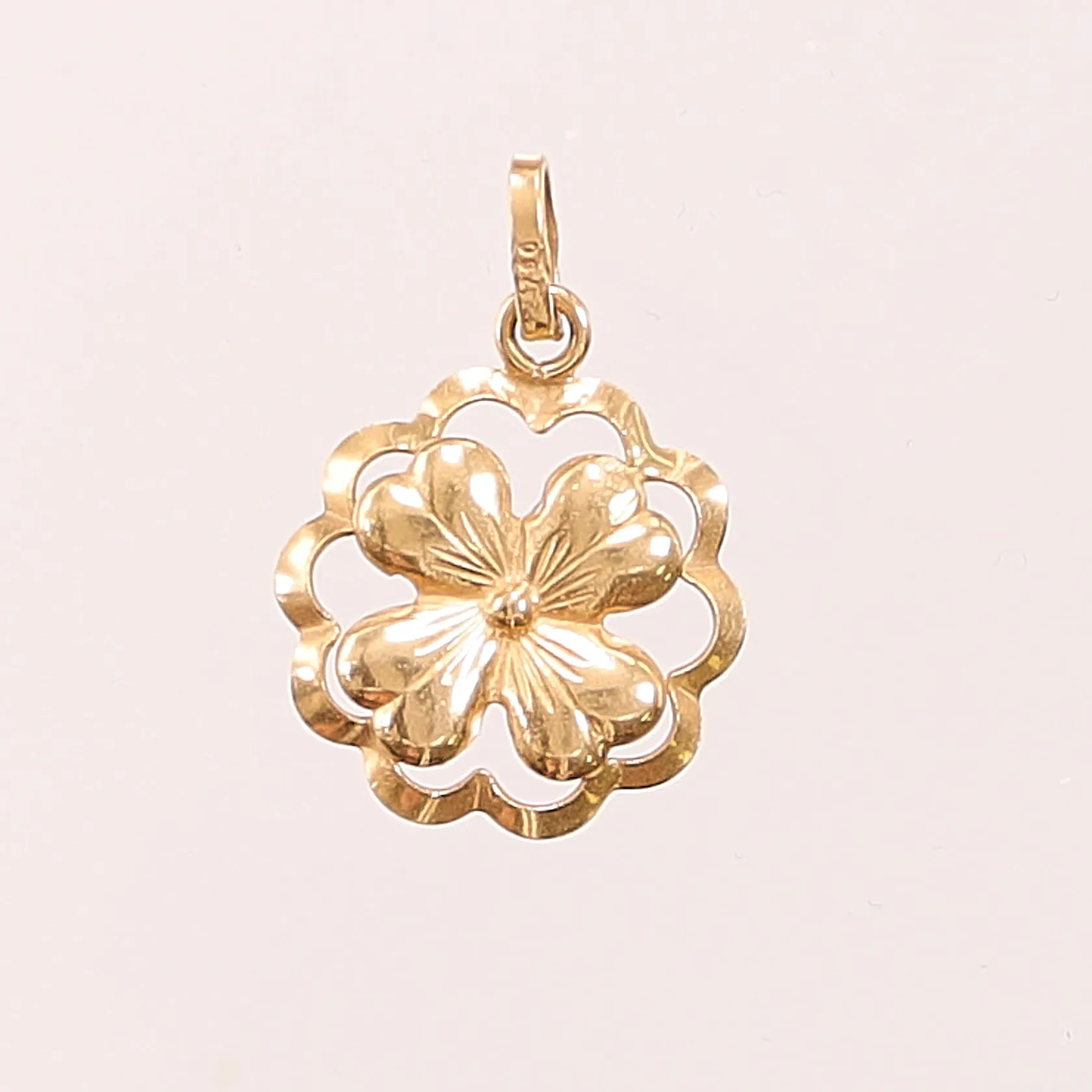 Hänge, fyrklöver, 25x18mm, 18K, 1,4g. Vikt: 1,4 g.