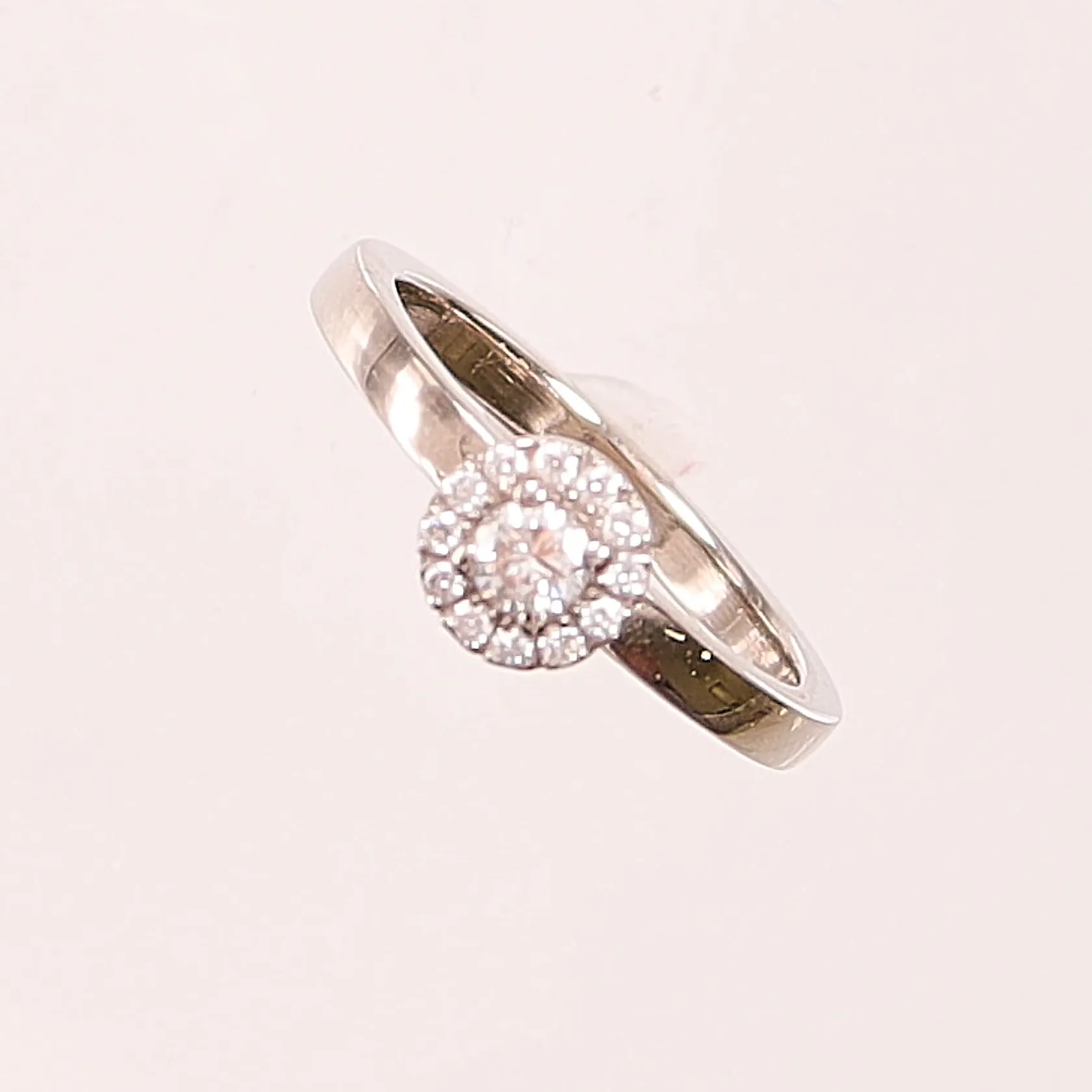 Ring, diamanter (1x ca 0,17ct + 12x ca 0,01ct), Ø17¾, bredd:2-7mm, 18K 5g. Vikt: 5 g.