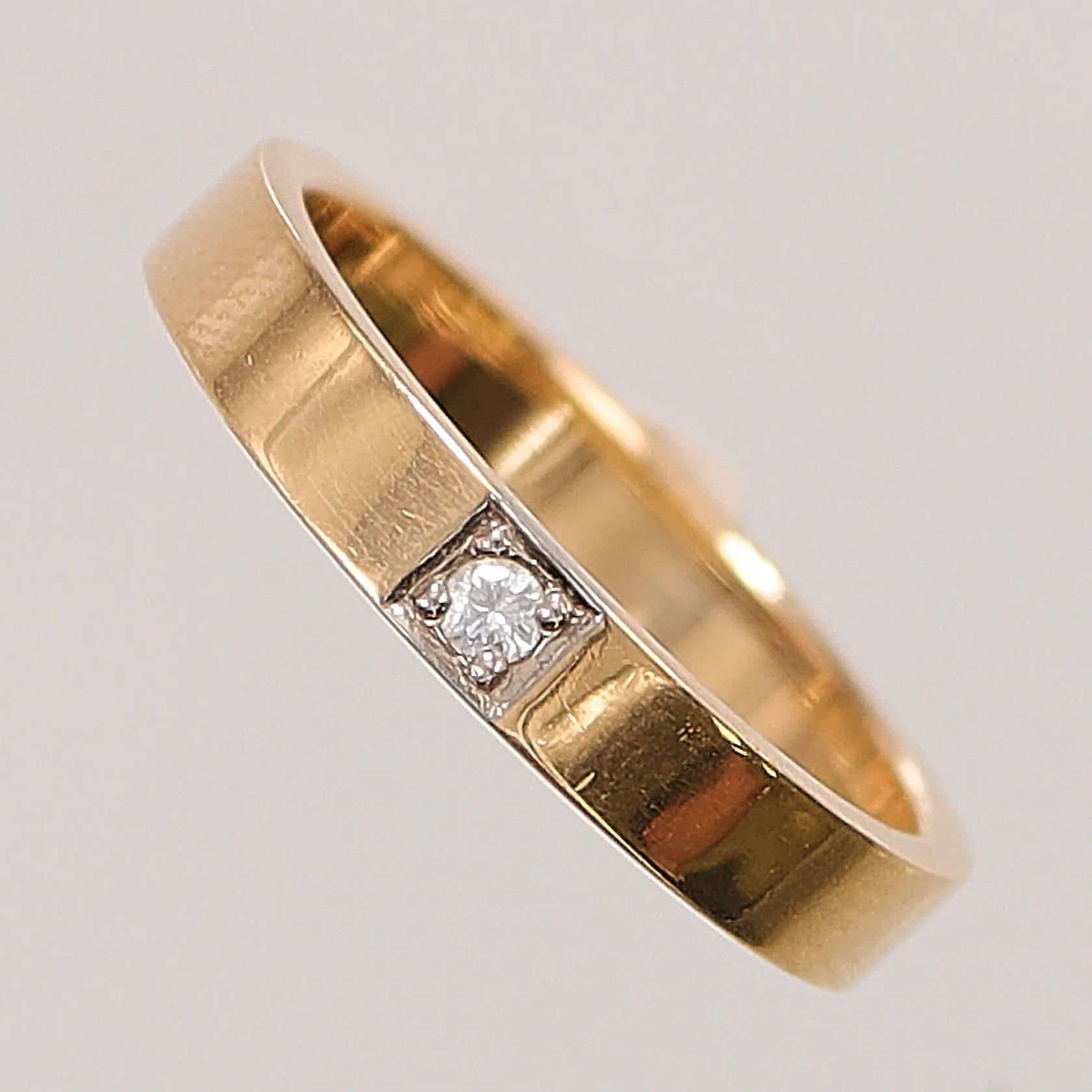 Ring, diamant ca 0,04ct, Ø18¼, bredd:3mm, 18K 4,5g. Vikt: 4,5 g.