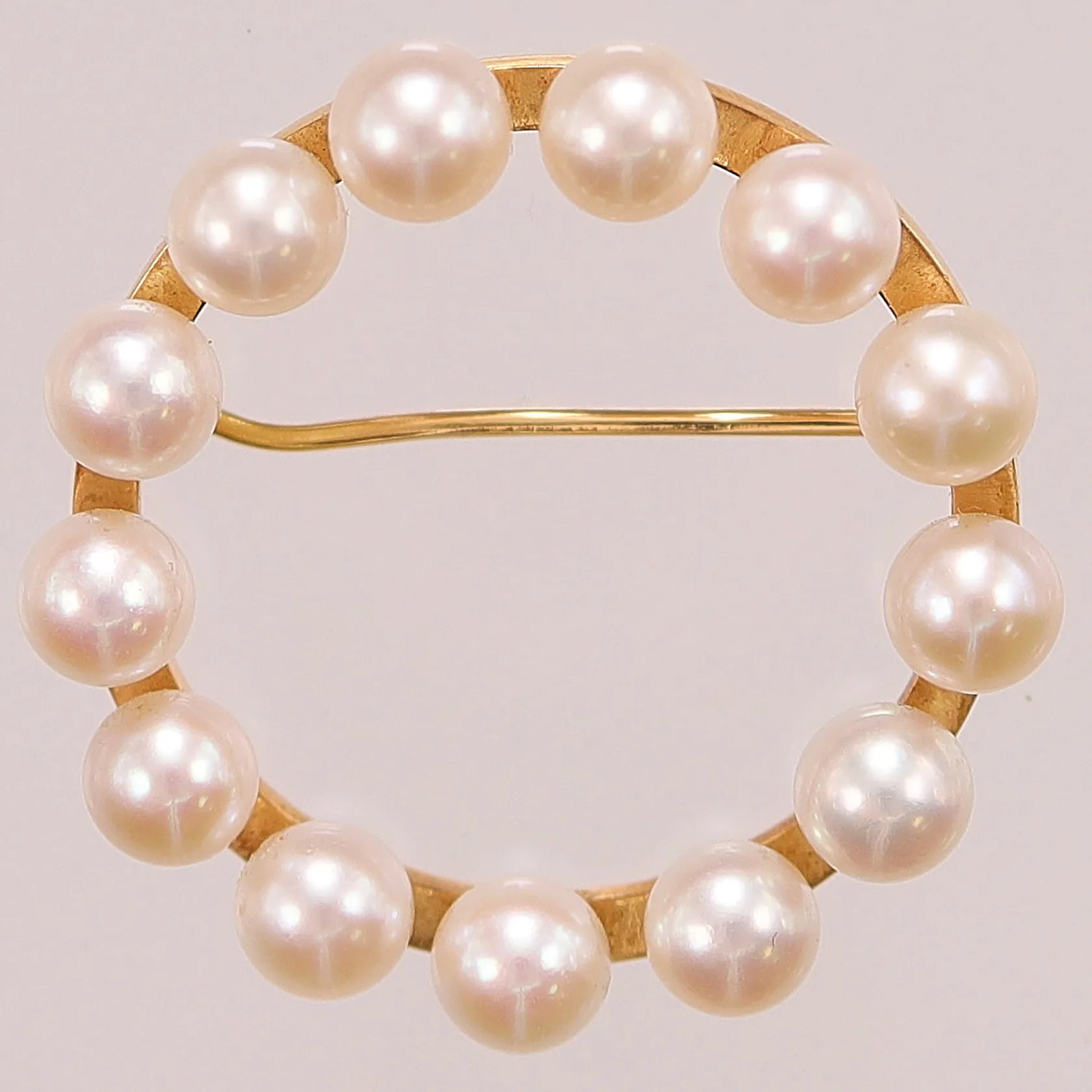 Brosch, 34mm, odlade sötvattenspärlor, 18K 10,2g. Vikt: 10,2 g.
