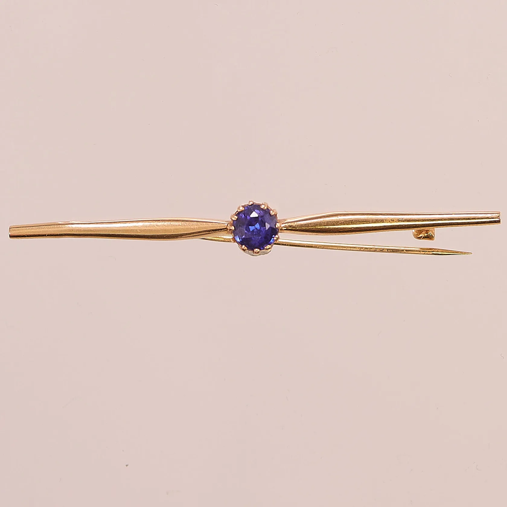 Brosch med safir, 56mm, tillhörande etui, 18K 1,8g. Vikt: 1,8 g.