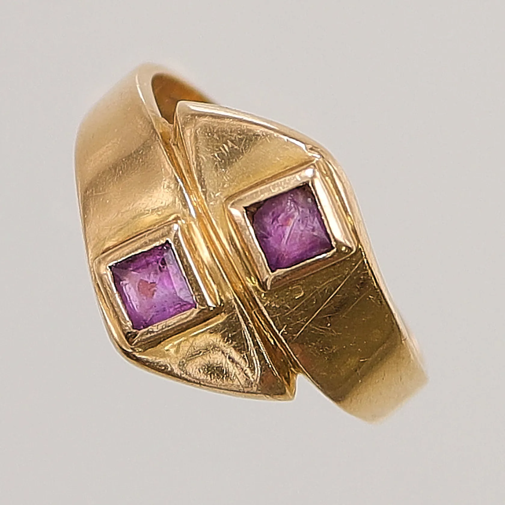 Ring med tvår stenar, Ø17,25, 18K 3,7g. Vikt: 3,7 g.
