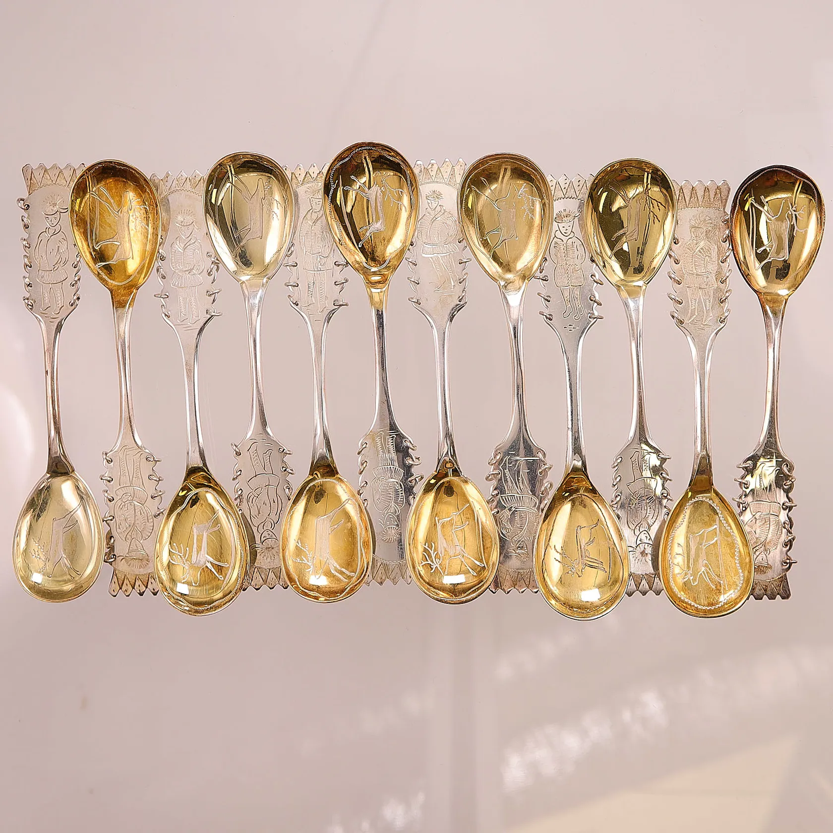 Skedar 12st med samiskt motiv, 11,5cm, Silver S830/1000, 182,1g. Vikt: 182,1 g.