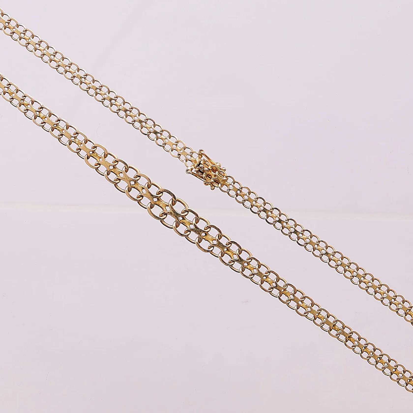 Collier x-länk, 43cm, bredd:5-8mm, 18K 14,9g. Vikt: 14,9 g.