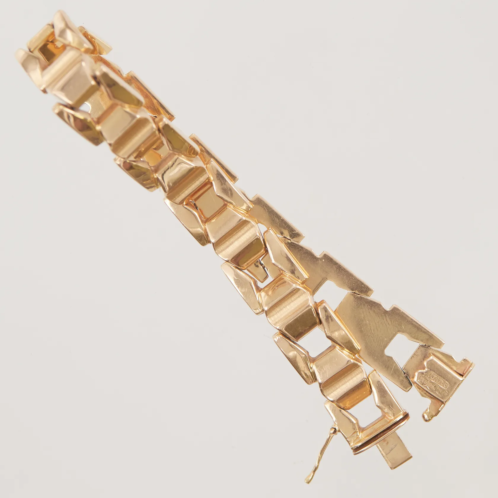 Armband, ihåligt, 19cm, bredd: 10,5mm, italienska stämplar, 18K, 15,5g. Vikt: 15,5 g.