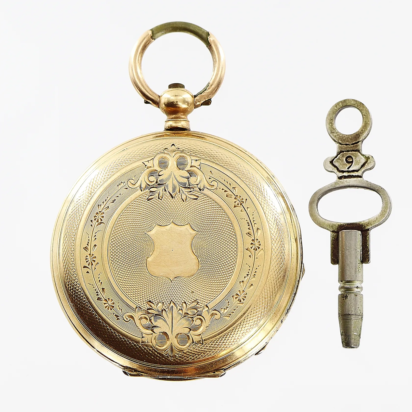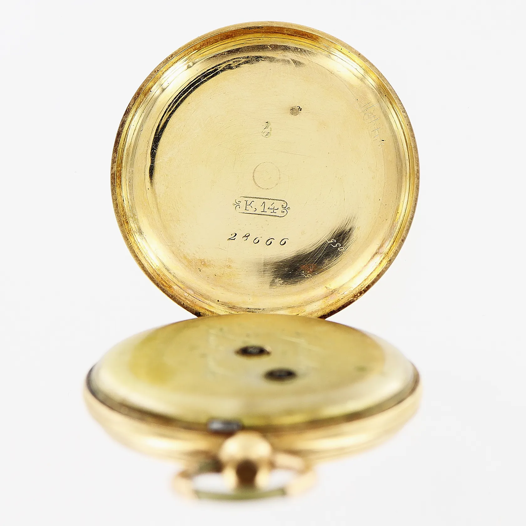 Fickur 14K, innerboett i metall, manuell, Ø33mm, nyckel medföljer, bruttovikt 27g, inga övriga tillbehör.