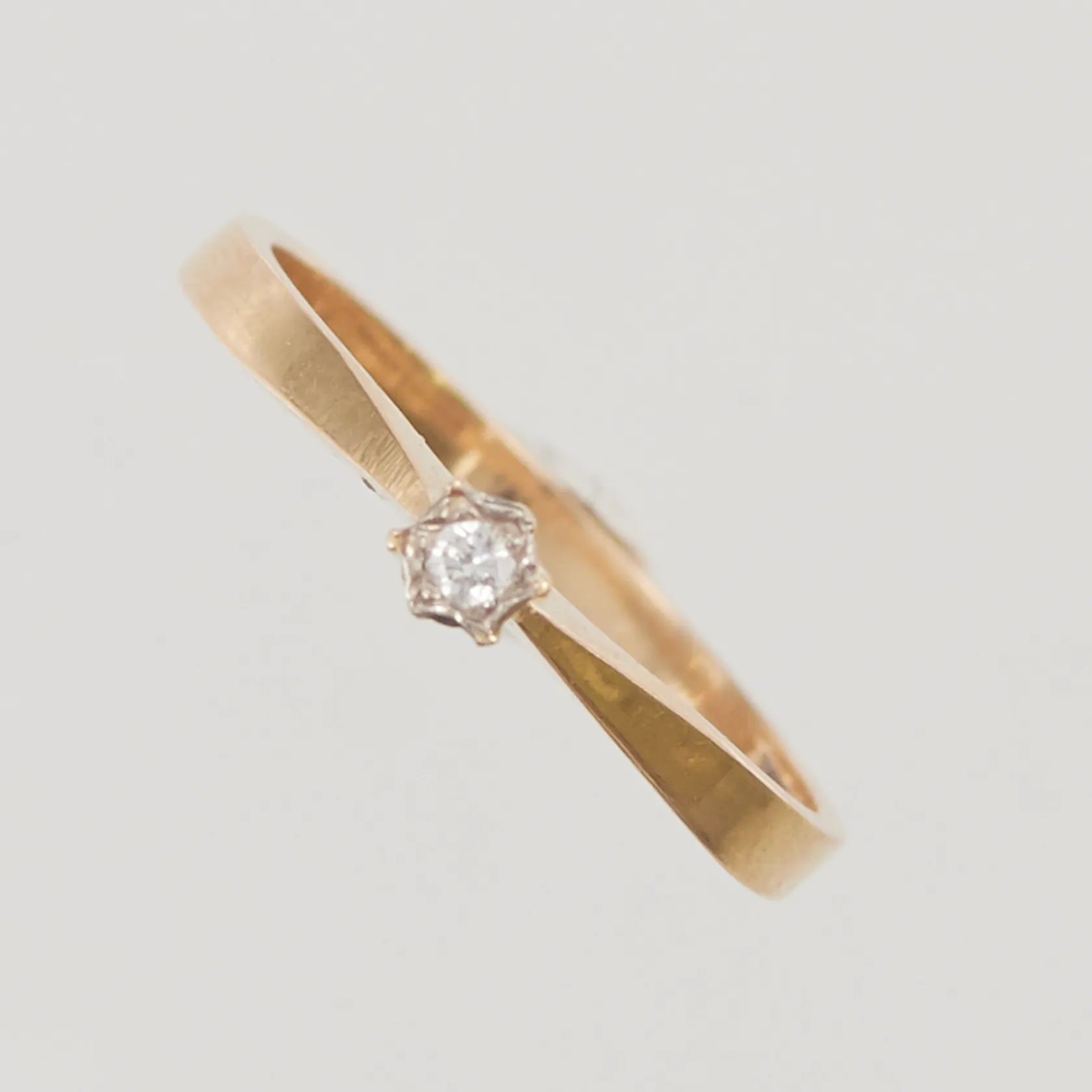 Ring med diamant 1 x ca 0,02ct, Ø17½, bredd: 3,3mm, 18K, 2,2g. Vikt: 2,2 g.