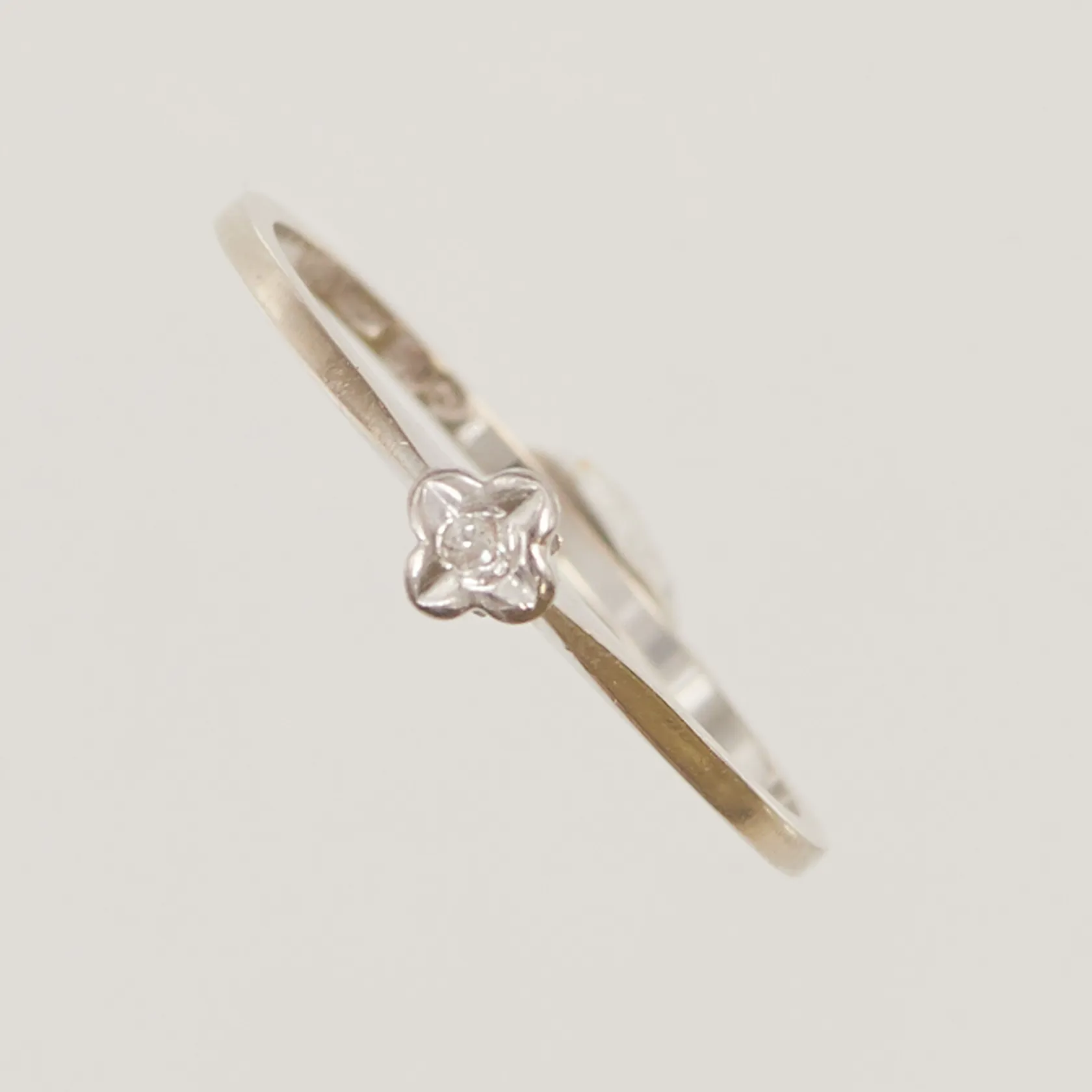 Ring med diamant 1 x ca. 0,005ct, Ø17,5, bredd:3,9mm, vitguld, 18K 1,2g. Vikt: 1,2 g.