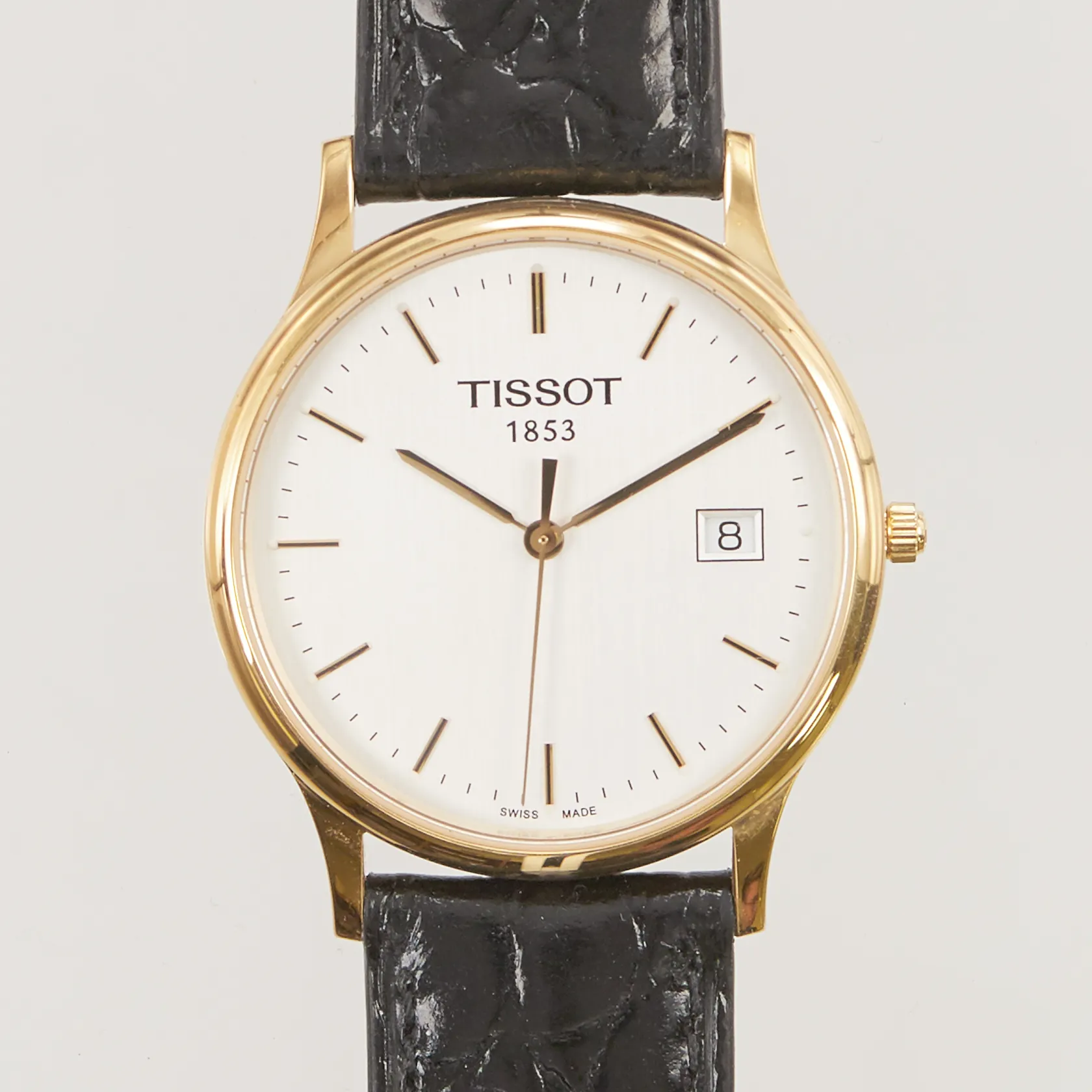 Herrur Tissot 18K, 33,5mm, quartz, gravyr "För nit och redlighet i rikets tjänst", batteribyte krävs, läderband, etui