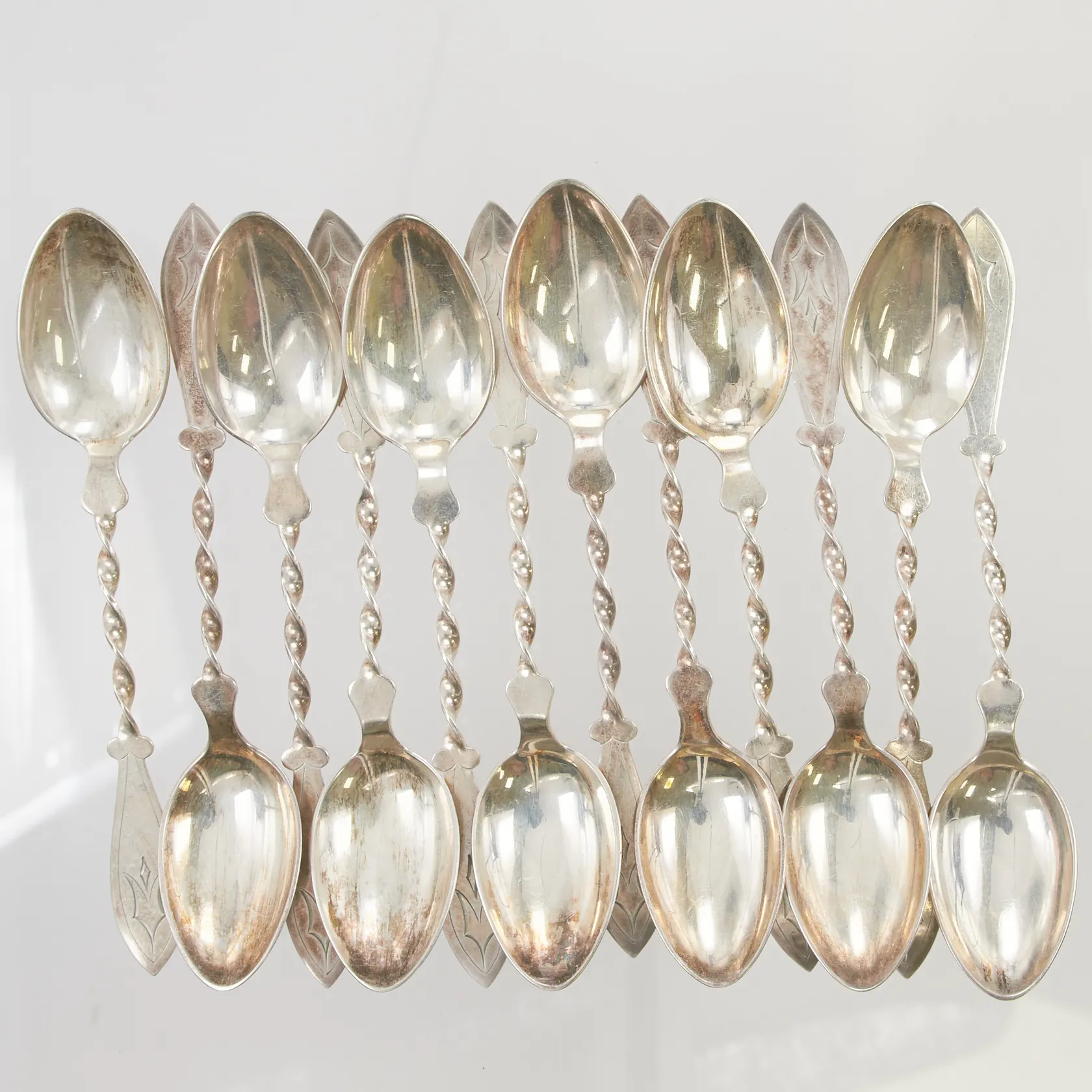 12 Skedar, 14cm, Silver S830/1000, 156,2g. Vikt: 156,2 g.