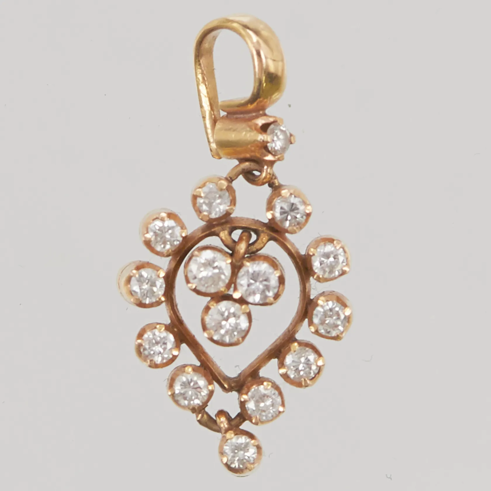 Hänge, diamanter 15x ca 0,02-0,05ct, 25x14mm, 3 diamanter med små nagg, 18K, 3,2g. Vikt: 3,2 g.